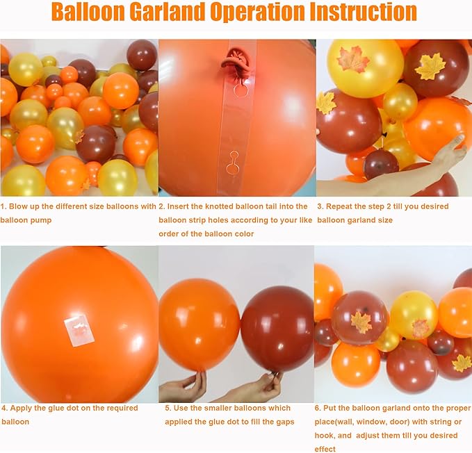 This 207-piece fall party decoration kit includes 100 12-inch latex balloons, 45 5-inch balloons in orange, gold, and coffee tones, 100 artificial maple leaves, a balloon arch strip, and glue dots. Made from high-quality latex, the balloons are thick and durable, while the silk maple leaves look realistic and can be used on walls, tables, windows, or gardens. Perfect for Thanksgiving, autumn parties, baby showers, weddings, or birthdays, this versatile set is easy to assemble in about 30 minutes, making it a fun and festive activity for family and friends.