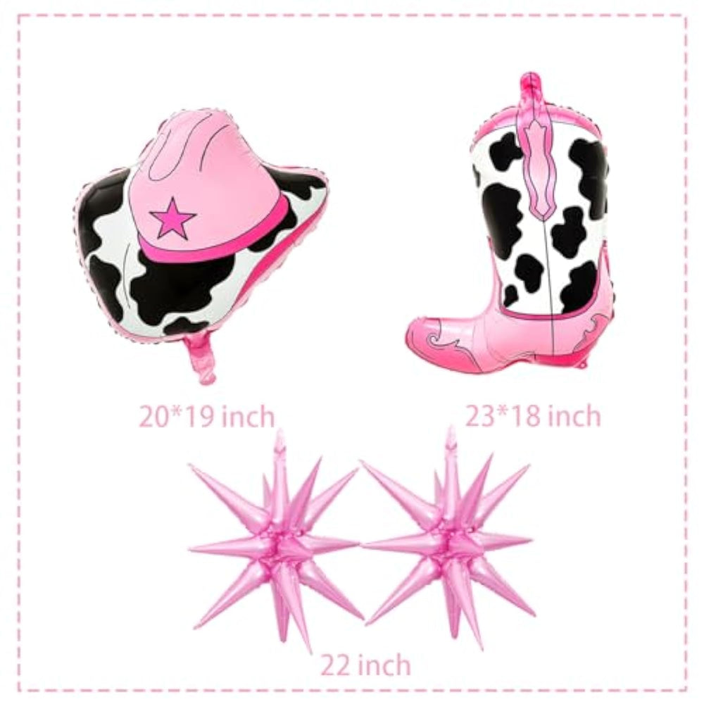 | Western Theme Party Decorations: Hat And Boot For A Wild West Adventure With Our Delightful Pink Western Cowgirl Party Decorations Set. Each Cow Print Balloon Is Adorned With Charming Cowgirl-Themed Designs In Soft Shades Of Pink, Adding A Touch Of Feminine Flair To Your Western Themed Party Decorations | | Pink Party Decorations Set: 1Pcs Cowgirl Boot Balloons, 1Pcs Cowgirl Hat Balloon, 2Pcs Pink Star Balloons, 16Pcs Pink Cow Print Latex Balloons. Its Perfect For Cowgirl Birthdays,Western Girl Party, Bridal Shower Party And Disco Theme Last Rodeo Bachelorette Party | | Premium Quality: Made From Durable Foil And Latex, Our Cow Print Balloons Is Durable And Long-Lasting, Ensuring It Retains Its Shape And Vibrant Color Throughout Your Event. It'S Designed To Withstand Hours Of Inflation And Display, Making It A Reliable Addition To Your Party Decorations | | Easy Inflation: Inflate The Balloon With Helium Or Air For A Floating Or Hanging Display, Respectively. Its Self-Sealing Valve Ensures Hassle-Free Inflation And Allows For Easy Re-Inflation If Needed | | Versatile Decoration: The Essence Of The Wild West With Our Western Themed Balloons, Featuring A Charming Pink Cowgirl Design, Whether You'Re Celebrating A Bachelorette Party, Birthday Party, Cowgirl Theme Birthday Parties, Last Rodeo Supplies Or Other Festival Party Events, This Cow Print Balloons Is A Versatile Decoration Option | |