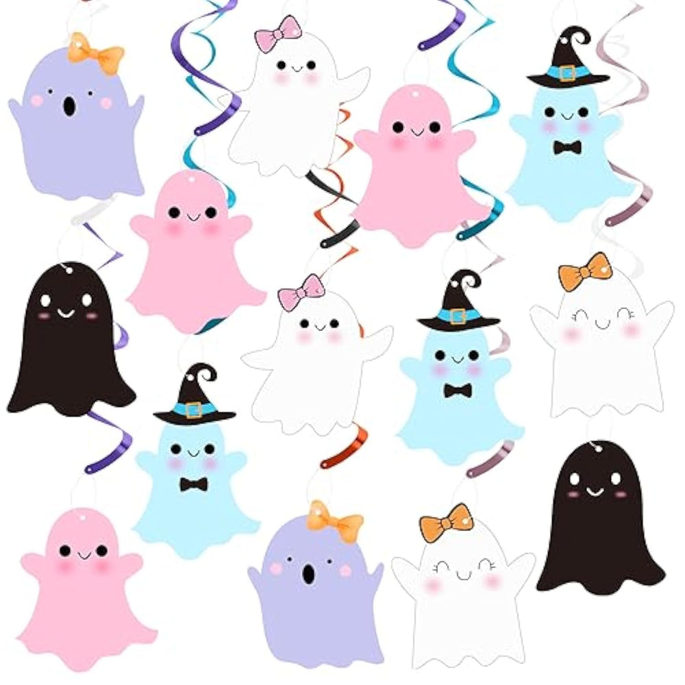 This Super Value Halloween Pumpkin Decorations Set includes 30 pumpkin cards in 10 different patterns and 30 black-and-orange foil swirl decorations, providing plenty for a festive and fun party atmosphere. Each pumpkin card measures approximately 4.7 × 3.7 inches (12 × 9.5 cm) and is made of high-quality, waterproof cardstock that resists wrinkles. The foil swirls extend 24–28 inches, crafted from durable PVC, and feature a convenient plastic hook for easy hanging. With cheerful pumpkin emoji designs and vibrant black-and-orange colors, this set adds a playful touch to any Halloween, pumpkin-themed, or birthday celebration. Perfect for decorating walls, windows, doors, ceilings, or tree branches, it’s ideal for creating a lively, spooky, and memorable party ambiance.