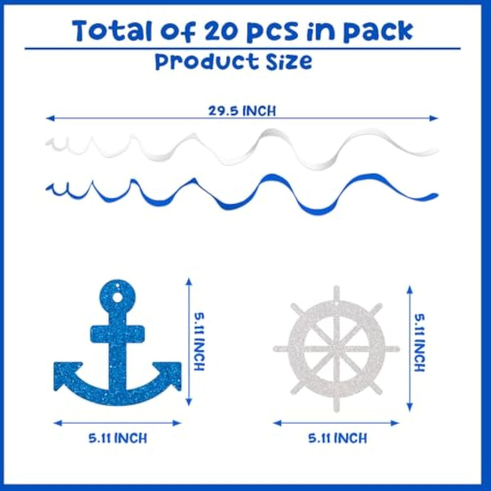 | ??Package??It Includes 10 Pieces Hanging Swirls With Nautical Themed Cutouts And 10 Pieces Hanging Swirls Without Cutouts. | | ??High Quality??Using Double-Sided Paper Made Them.Perfect Party Supplies For A "Nautical" Themed Birthday Baby Shower Bridal Shower Party. | | ?Easy To Install?Just Easily Link The Nautical Swirls Cards With The Steamers, Our Hanging Ceiling Swirls Party Decorations Can Be Hung On Walls, Windows, Doors, Ceilings, And Anywhere You Want! | | ??Wild Use??This Nautical Themed Swirls Is Also A Great Addition To A Nautical Theme Baby Shower, Advanture Birthday , Or A Photo Booth Frame For Nautical Theme Party. | | ??Unique??Decorate Your Event With This Unique And An Absolute Fun Thrilled Eye-Catching Party Complements Which Will Impress Your Guests. | |