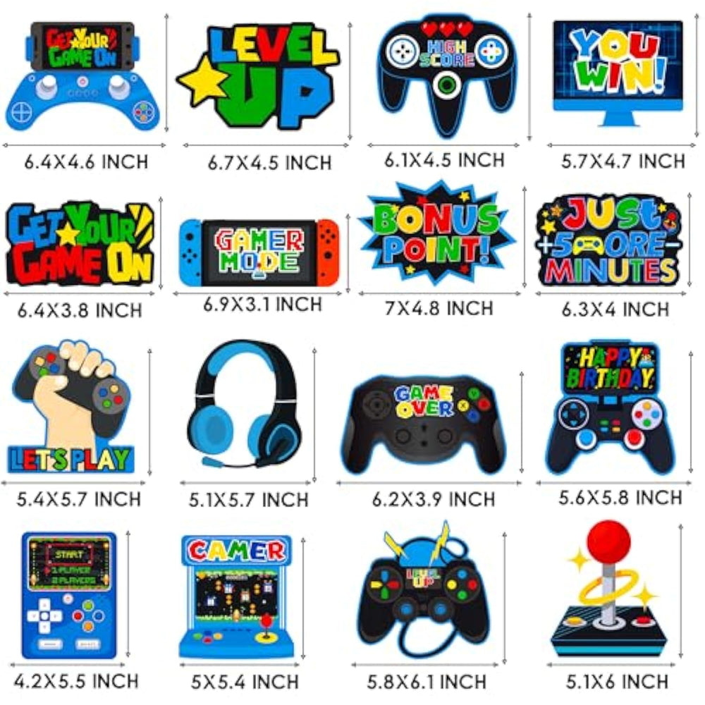 This set includes 20 video game-themed hanging swirls, with 16 different cool patterns and 4 solid-color swirls. The vibrant designs and bright colors, including blue, dark blue, black, red, gold, and green, will add a fun and energetic touch to your video game party. Each swirl comes with a plastic loop at the top, making it easy to hang on windows, doors, walls, ceilings, or trees. Made from durable foil plastic and cardstock with double-sided prints, these swirls are reusable and perfect for creating a striking atmosphere at your game-themed birthday celebration, whether indoors or outdoors.