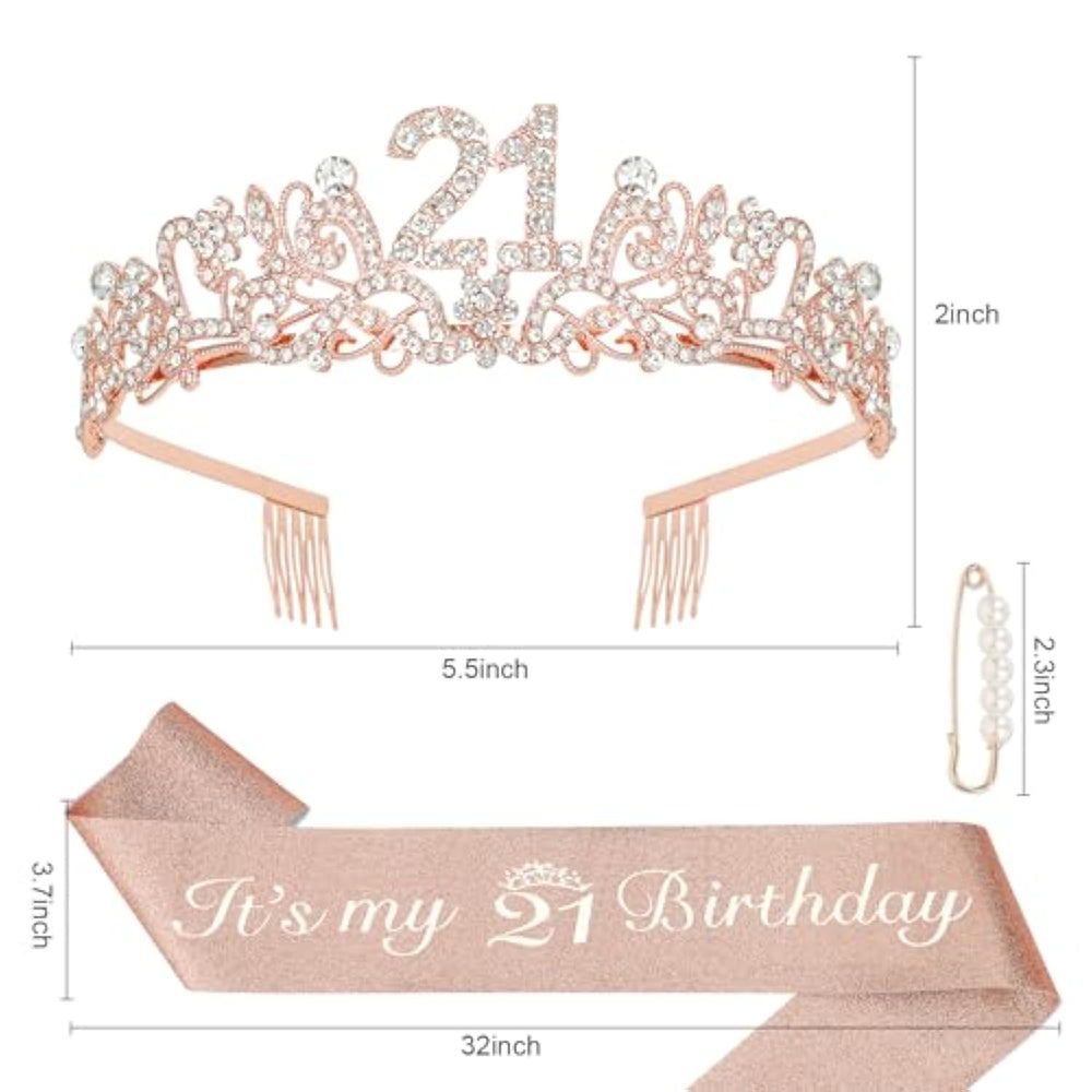 | 21St Birthday Decorations For Her: The Set Includes 21St Birthday Sash, 21St Birthday Crown And Pearl Pin. It Completes Your Birthday Look And Help You Get More Compliments. Perfect 21St Birthday Gifts For Her | | Glitter 21St Birthday Sash: In The Selection Of The Cloth, We Used The Shiny Gold Cloth To Make You The Most Eye-Catching Princess At Your Birthday Party?Pearl Pin Is Included In The Package To Connect The Sash) | | Rhinestone 21St Birthday Crown: Each Birthday Crown Is Inlaid With Good Quality Rhinestones And This Makes It Shine In The Light. Comb At The End Can Make The Crown More Firmly Worn | | Good Quality: We Choose High-Quality Alloy Materials To Make The Crown Not Easily Damaged, Rejecting Disposable Products! | | Risk Free: We Always Strictly Control The Quality Of Our Products, We Believe That You Will Be Satisfied With Our Products. If You Have Any Problems, Please Feel Free To