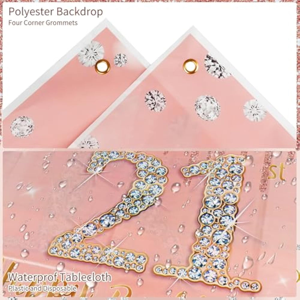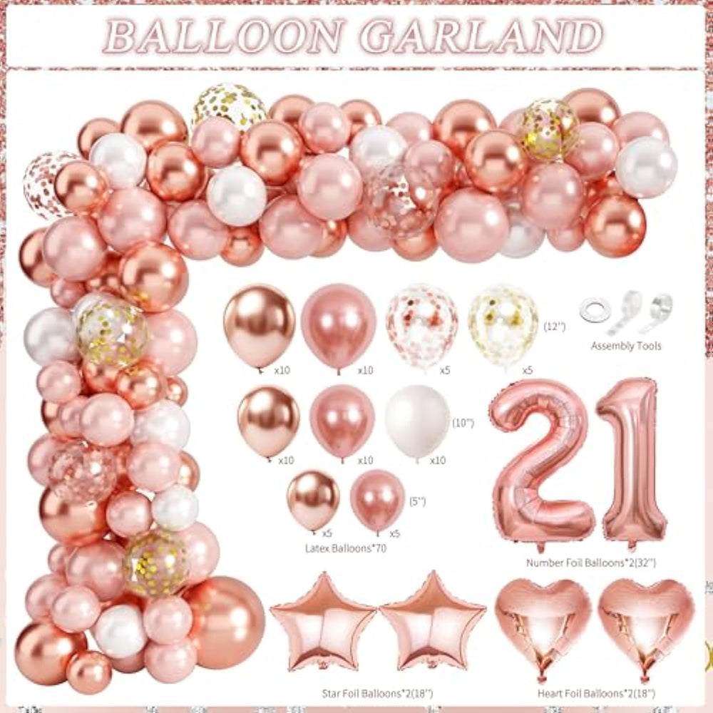 | All-In-One 21St Birthday Party Kit – Includes Everything For A Flawless Celebration: 1 "Happy 21St Birthday" Backdrop, 1 Banner, 1 Garland, 2 Fringe Curtains, 1 Tablecloth, 1 Cake Topper, 12 Cupcake Toppers, 1 "Finally 21" Sash, 1 Crown, 6 Paper Pompoms, 12 Rose Gold Butterfly Wall Stickers, 70 Latex Balloons, 6 Foil Balloons, And 3 Assembly Tools – All In Sophisticated Rose Gold | | Elegant Rose Gold Theme – Features Sleek, Grown-Up Designs Perfect For Milestone 21St Birthdays. The Glitter Accents, Metallic Foil Balloons, And Chic Typography Create A Stylish Atmosphere – Great For Him Or Her | | ?Premium Quality Easy Setup – Thick, Reusable Backdrop (No Wrinkles), Wrinkle-Resistant Tablecloth, And Long-Lasting Foil Balloons. Balloon Arch Kit Includes Balloon Tape, Glue Points, And Ribbons For Quick Assembly | | Designed For Memorable Photos – The Large "21" Foil Balloons And Glitter Fringe Curtains Create Perfect Picture Spots To Capture This Special Birthday Moment. Great For Cake Table Displays And Party Entrance Decorations | | Versatile 21St Birthday Celebration Kit - Designed To Suit Any Style Of Milestone Party, From Formal Gatherings To Lively Celebrations. The Elegant Rose Gold Theme Works Equally Well For Girl'S And Women'S Parties. Also Serves As A Thoughtful 21St Birthday Gift That Helps Create Lasting Memories | |