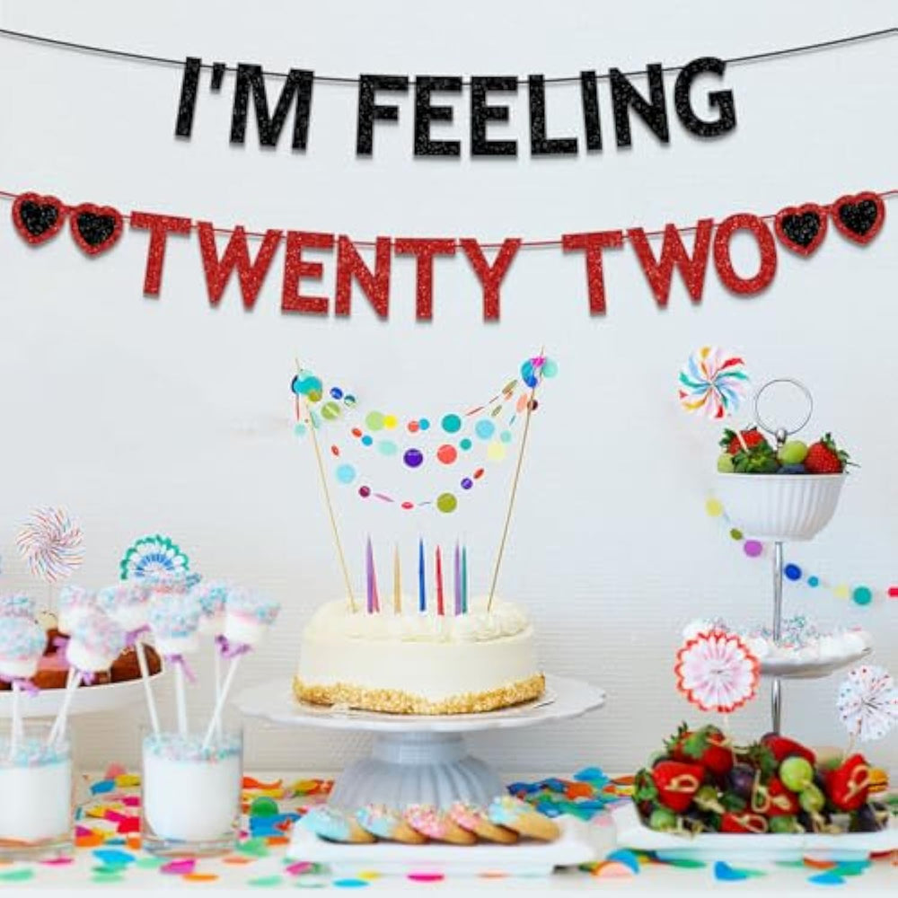 | 22Nd Birthday Party Decorations For Girls: Perfect For Taylor Singer Themed Girls 22Nd Birthday Party, Cheers To 22 Years Old Birthday Party, Rock 'N' Roll Themed Birthday Party,Photo Studio, Etc | | High Quality Material: High-Quality Cardboard And Flashing Letters. Perfect For Girls 22Nd Birthday Party. | | Easy Assembly: String Through The Pre-Cut Holes On The Card Stocks And Hang It Up.Hang From A Party Table, Across A Wall, Inside A Party Tent, In The Hallway Or On The Tree. | | Suitable For Decoration: Perfect For Hanging From Branches And Ceilings, Or Open Against A Wall, Hanging Up Dessert Tables, Backdrops, And The Overall Party Space.Our Black Red Glitter Music Themed Girls 22Nd Birthday Party Banners Were Super Premium And One-Of-A-Kind. | | After Sales: If You Have Any Questions About This Item, Please Feel Free To