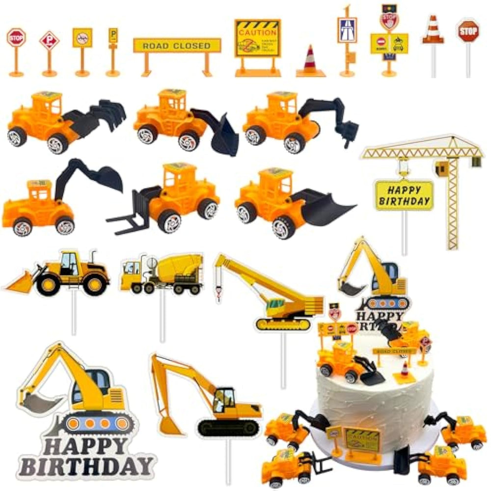 | Construction Theme Cake Topper: Our Package Includes 23Pcs Construction-Themed Cake Toppers, Including 6 Pieces Engineering Truck Cake Toppers, 9 Traffic Roadblock Sign Cake Toppers, 7 Constructions Cupcake Toppers And 1 "Happy Birthday" Cake Topper. This Set Meets All Your Decoration Needs For Any Celebration | | Premium Safe Materials: Made From High-Quality Plastic And Alloy, These Construction Vehicles Cake Toppers Are Odorless And Safe For Use On Cakes And Cupcakes. They Are Lightweight, Reusable, Truck Cupcake Topper Are Ideal Construction Birthday Party Supplies | | Perfect Size For Kids: Please Refer To The Pictures For Specific Dimensions. Construction Vehicles Toys Compact And Lightweight Design Makes Them Easy For Little Hands To Handle, Small Enough For Children To Easily Hold Or Put In Their Pockets And Play With It Everywhere. (Suitable For Children Aged 3 And Above) | | Wide Range Of Applications: Ideal For Construction-Themed Parties, Birthday Celebrations, Home Parties, Christmas, Construction Party Favors, And Other Holiday Events. Construction Birthday Cake Decorations Not Only Enhance Cakes And Cupcakes But Also Serve As Party Favors Or Gift Bag Fillers, Adding Fun To Any Occasion | | Fun Truck Toys: Ready To Use Straight Out Of The Package—No Assembly Required! Simply Place Them On Cakes To Create A Unique Design. These Construction Toys Also Double As Educational Toys, Sparking Creativity And Hand-Eye Coordination In Children. Plus, Our