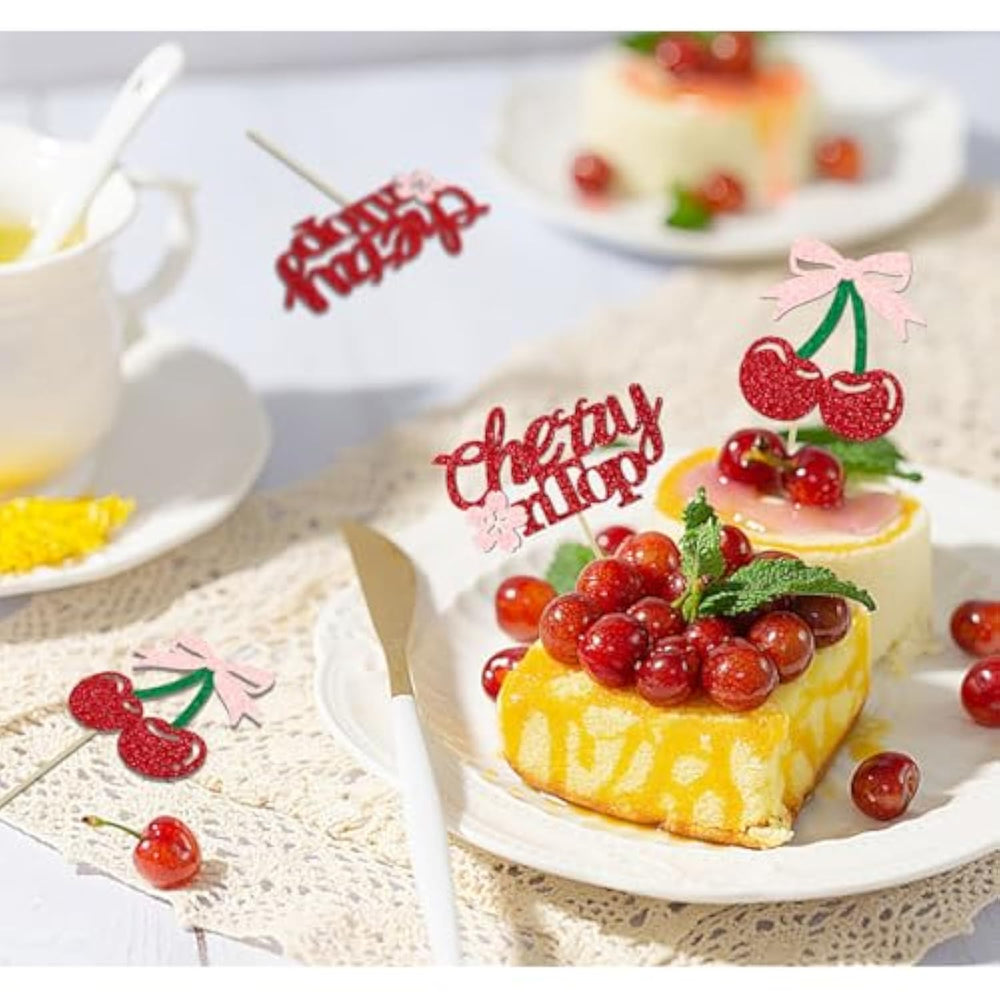 | ?Package/Size?: Enough Quantity And Proper Size ! You Will Get Total 24 Pcs. Ample Quantity Can Meet Your Different Decoration Needs. The Cherry Cupcake Topper Measures 1.97" Wide And 2.16" Tall, The Cherry On Top Cupcake Topper Measures 2.6" Wide And 1.6" Tall. | | ?Premium Quality?:We Use Premium Thick Card-Stock With Food Grade Hard Paper Stick, Which Is Durable And Sigle Side Glitter, Shinier And Long Lasting. No Sparkle Shedding. | | ?Cherry Cake Topper?:These Sparkling And Cute Cake Decorations Are Excellent Accessory For Cherry Or Fruits Party. The Topper Features A Unique Cherry Design With A Charming Bow And Delicate Cherry Blossoms, Adding Extra Sparkle And Cuteness. These Cherry Cake Toppers Will Make Your Cake More Attractive And Everyone Will Love It! It'S Also A Great Photo Prop To Make Your Party More Fun! | | ?Easy To Use?:The Cupcake Topper Has Been Assembled, You Can Just Open The Package Then Insert Into Your Cupcake, Decorate It To Become More Funny And More Attractive! | | ?Widely Usage?:Sweet Cherry Cake Toppers Can Be Applied In Baby Shower, Birthday Party, Bridal Shower, Bachelorette Party, Wedding And Other Fruit Theme Parties. It Also Can Be Used As Cupcake Picks,Ice Cream Picks, Appetizer Picks, Fruit Picks, Or Party Food Picks. This Decoration Is The Perfect Addition To Any Cherry, Fruit And Summer Themed Every Party! | |