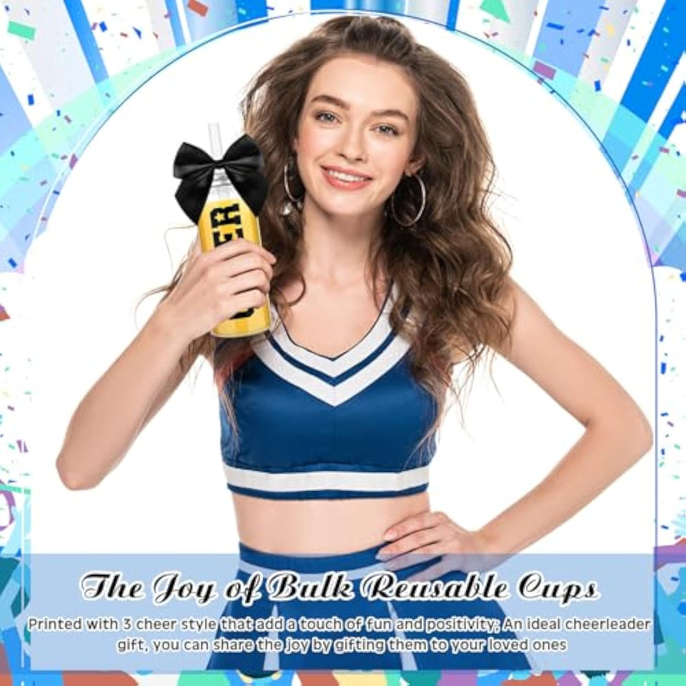 | Packaging Includes: You Will Receive 24 Pcs Cheer Water Bottle With Straws And Lids, Printed With 3 Cheer Style, And The Cheer Cup Has A Small Bow Decoration That Add A Touch Of Fun And Positivity; It'S Your Ideal Gift For Girls Or Teenagers Who Love Cheerleading, Dancing, Or Gymnastics | | Appropriate Capacity: The Cheer Tumbler Capacity About 14.2 Oz/ 420 Ml, The Ideal Size Can Meet The Needs Of Most People, And The Equipped Straw Makes Your Use More Convenient; Adequate Quantity Can Effectively Meet Various Needs In Your Daily Life | | Quality Material: Our Reusable Cheer Cups With Lids Are Made From Quality Plastic That Can Withstand Repeated Usage; The Cheer Teams Gift Cup Is Lightweight And Easy To Carry, Meeting Your Various Drinking Water Needs Indoors Or Outdoors | | Design Style: This Cheer Water Bottle With Straws And Lids Comes In 3 Different Interesting And Inspiring Cheerleading Themed Designs, With Patterns And Text Related To Cheerleading Themes Showcasing A Love And Passion For Sports | | Thoughtful Gift: These Cheerleading Cheering Up Gifts Are Suitable For Various Cheerleading Competitions, Cheerleading Work, And Cheerleading Training; They Are Ideal Gifts For Friends, Family, Cheerleaders, Cheerleaders, Or Colleagues | |
