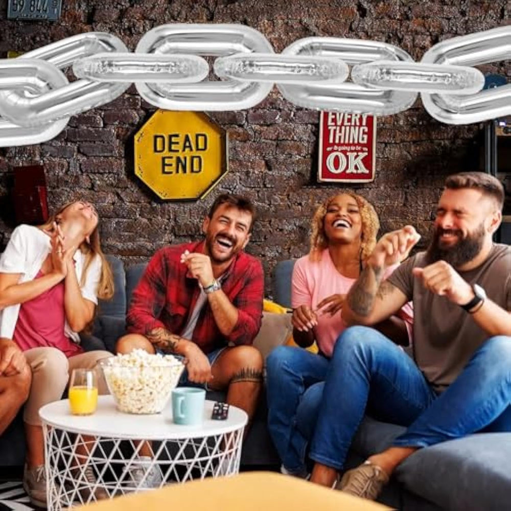 | Package Includes: You Will Receive 24 Pcs 16 Inch Chain Balloons, A Roll Of Ribbon, And A Straw In Sufficient Quantity. Connect These Chain Balloons Together Before Inflation, And After Inflation, Create A Fashionable Chain Balloon Effect To Meet Daily Party Needs. | | High Quality Materials: These Chain Balloons Are Made Of Aluminum Foil, Which Is Safe And Environmentally Friendly, Not Easy To Break And Fade, Lightweight, Easy To Hang And Carry, Self Sealing Design, And Exquisite Appearance Will Create An Interesting Atmosphere For The Room. | | Perfect Party Decorations: These Big Chain Balloons Are Uniquely Designed And Beautifully Printed, Allowing You To Use Them In Arches And Doorways, Connecting Them Along The Ceiling And Walls, Bringing You A Retro Style From The 1990S And Bringing More Fun To Your Guests. | | Easy To Use: These Chain Balloons Need To Be Connected To Each Other Before Inflation, Which Can Be Difficult To Connect After Inflation; Simply Use A Straw Or Air Pump To Inflate The Chain Balloon. After Filling, Flatten The Expansion Port And Automati