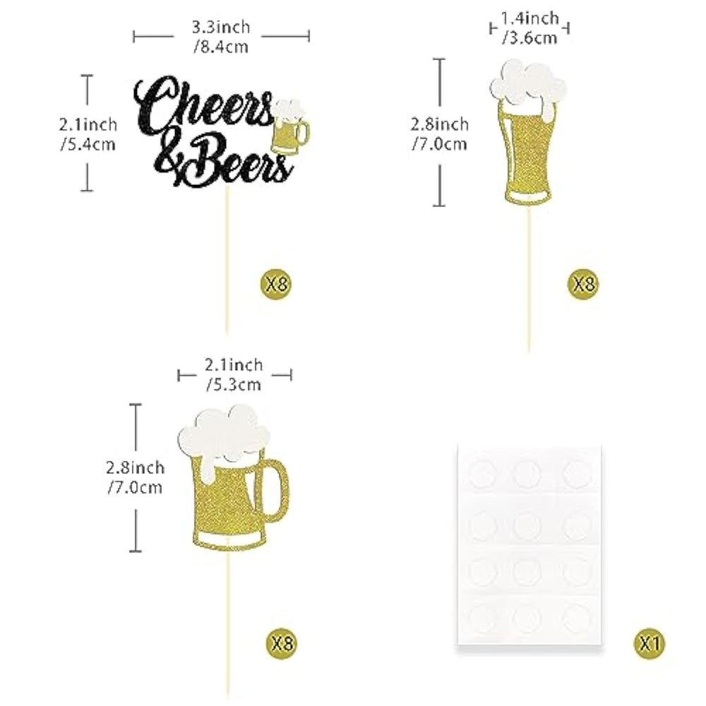 | Package Included: You Will Get Total 24 Pcs, 3 Patterns, 8 Pcs Of Each Pattern. Ample Quantity Can Meet Your Different Decoration Needs. | | Material: Our Cupcake Toppers Are Made Of High Quality Single-Sided Glitter Thick Card Stock And Food Grade Bamboo Stick, It Is Non-Toxic, Odorless, And Not Easy To Break, Which Make Them Safe And Reliable. | | No Assembled Required: These Cake Topper Are Assembled In Advance, So You Don'T Need To Diy It By Yourself, Which Can Save You Time And Effort During The Process Of Party Preparation. | | Widely Application: These Cupcake Topper Are Perfect For Beer Theme Party, Cheers Beer Faestival Theme Party, Wedding Anniversary Theme Party, Baby Shower Theme Party, Kids Birthday Theme Party Cupcake Decorations, They Can Make Your Cupcake More Attractive And Bring The Fun To Your Party. You Can Also Apply Them For Ice Cream, Fruits, Cookies And Other Desserts. | | Tips: These Cupcake Toppers Are Designed For Single-Sided, The Backside Is Plain White.This Topper Is Just For Decoration Only. Please Do Not Use In The Oven Or Microwave And Please Keep Them Away From Kids To Prevent Poking Risk. | |