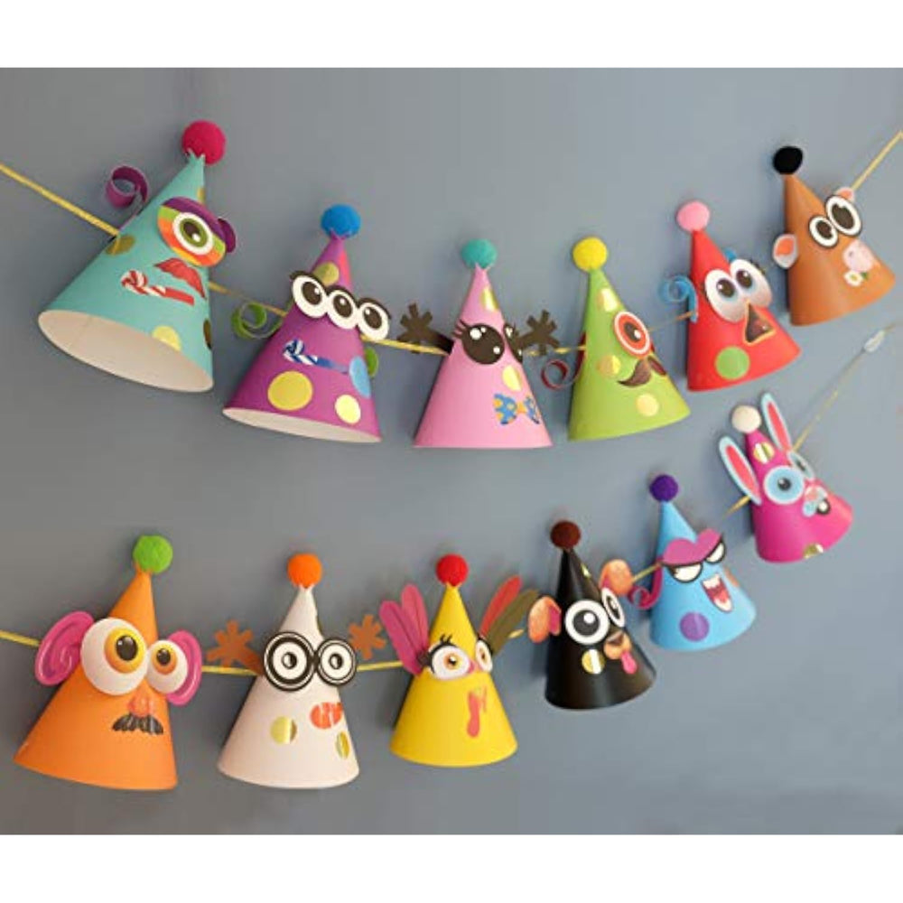 | This Kit Consists Of 2 Sets Of The Original Pack Of 12 Hats. Comes With Everything Needed To Create 24 Easy-To-Make Hats Measure 6.8" X 4.5". Includes 24 Cutout Cards Of Hats, 6 Sheets Of Cutout Eyes + Ears + Feathers + Hands + Hair, 24 Pompoms, 2 Sticker Sheets, 2 Gold Foiled Dots Sticker, Elastic Strings, Double-Sided Sticky Pads. | | Easy To Decorate And Assemble - Easily Turn Cards Into Cone Shape Hats By Locking Into A Pre-Punched Insertion Slot. Long Elastic Strings Are Provided To Fit Adults And Kids. | | Inspire Creativity With Plenty Of Decorative Elements Such As Pompoms And Reflective Gold Stickers. Silly Faces With Mustache, Eyes, Ears And Mouths Can Be Used To Create Fun Characters - Rabbit, Turkey, Dog, Cow, Bird, Snowman, Mister Potato, Monster And More. | | Long-Lasting And Bright Color Cutout Hats Printed With Matte Lamination. Savor The Memories By Using Them For Display During And After A Party. String Them Up As A Banner To Decorate Nursery, Daycare, Classroom, Photo Studio And Play Room. | | Perfect Pre-Party Activity – Offer Hours Of Creative Art And Fun By Keeping Children And Adults Happy And Occupied. Have Them Enjoy Personalizing Their Hats, Wear Their Effort And Get A Laugh Out Of The Creations. | | Entertaining - Great As Party Favors To Impress Your Guests At Different Occasions Such As Birthday, Easter, Thanksgiving, Christmas, New Year Celebration, Preschool Parties And Spring Break. | | Arts And Crafts – Perfect For Parent-Kid Time, Home And School. This Paper Craft Hats Kit Can Even Be A Fun Summer Holidays Diy Project! A Perfect Boredom Buster For Kids Aged 3 And Up! | |