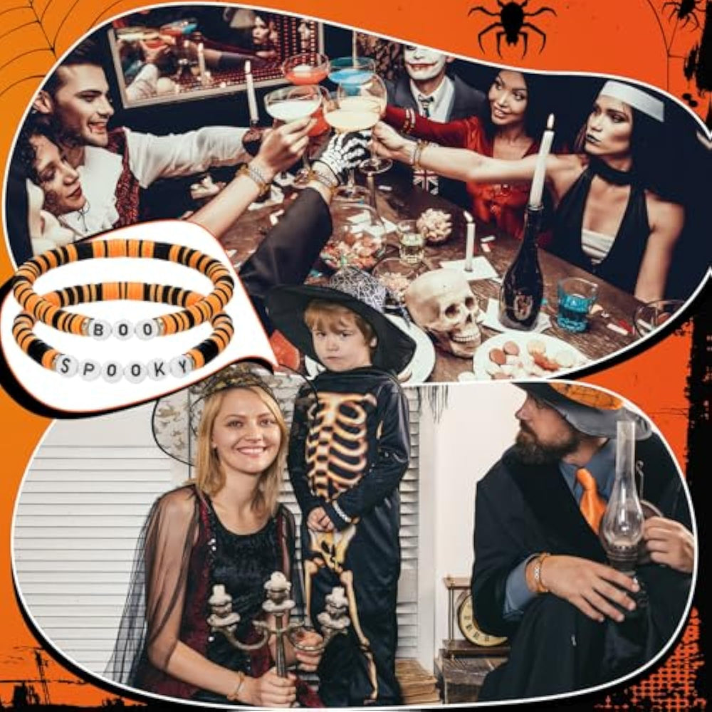 | Diversity And Quantity: The Package Offers 24 Pcs Halloween Bulk Bracelets, Available In 2 Different Styles: 'Spooky' And 'Boo. ' With Such A Number, You Can Enjoy The Pleasure Of Sharing These Trendy Accessories With Your Family And Friends, Significantly Adding To The Festive Halloween Charm | | Appealing Color Scheme Design: Our Halloween Bracelets For Girls Are Designed Using Eye Catching Orange And Black Beads, Creating A Visual Treat; With The Fun Words 'Spooky' And 'Boo', They Are An Exciting Accessory To Not Only Match Your Costume But To Also Make You And Your Friends Stand Out In The Crowd | | Comfortable Fit And Reliable Quality: Our Bulk Halloween Bracelets, With An Approximate Size Of 7.5 Inches, Are Designed To Comfortably Fit Most Wrist Sizes; Crafted Using 0.24 Inch/ 0.6 Cm Diameter Polymer Clay Beads, These Bracelets Are Not Only Durable But Also Have A Pleasingly Long Lifespan; The Firm Bead Stringing Ensures Robustness, While The Vivid Black And Orange Beads Add A Charming Appeal | | Ideal Party Gift: Our Black And Orange Halloween Bracelets Make For The Proper Party Gifts, Particularly Apt For Gifting Your Loved Ones On Halloween; Share The Pleasure Of Wearing These Charming 'Spooky' And 'Boo' Lettered Bracelets Together At The Halloween Party, Ensuring A Delightful Bonding Experience | | Wide Usage: Halloween Is A Time For Fun Filled, Themed Activities, And These Tastefully Weird Bracelets Cater To That Mood; Regardless Of Whether You'Re In Costume Or Not, These Halloween Bead Bracelets Create A Strong Festive Atmosphere; With Their Trendy Yet Eerie Aesthetic, Our Halloween Bracelets Effortlessly Radiate Your Tasteful Stylish Sense During The Holiday | |