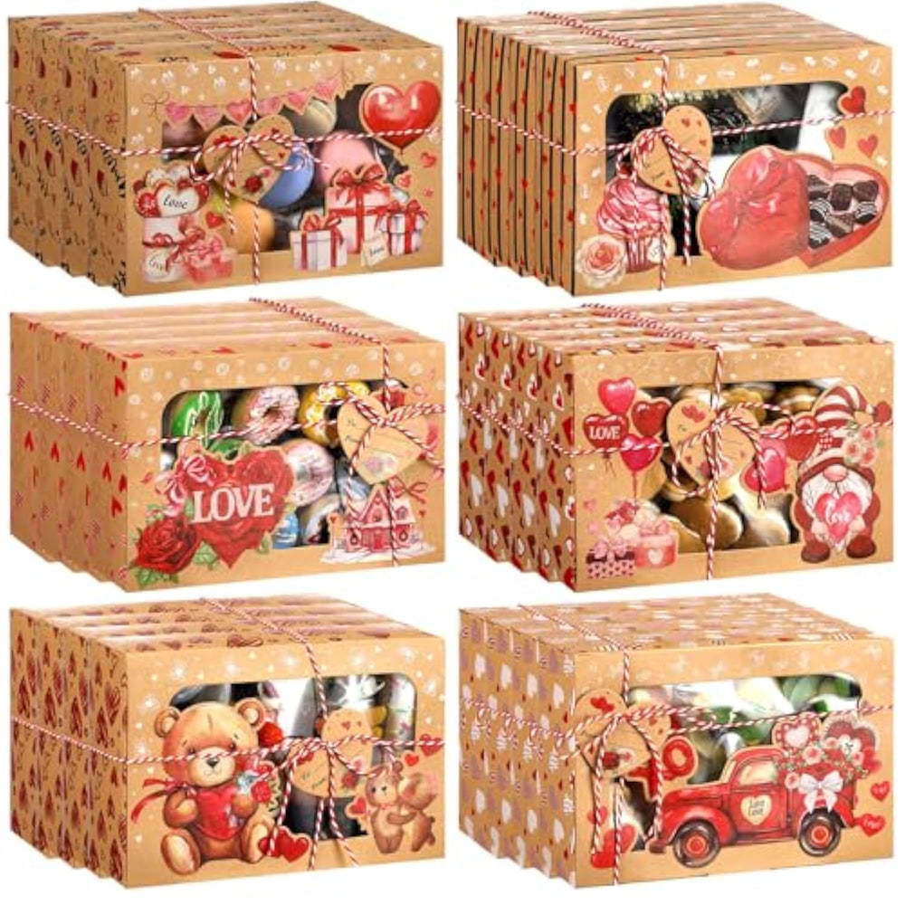 | Valentine'S Day Cookie Boxes: Our Package Includes 24 Valentine'S Day Cookie Boxes, 24 Valentines Cards, And 1 Red And White Hemp Rope; There Are 6 Different Designs Of Valentines Treat Boxes, Each With 4, Which Contain Classic Valentine Elements Such As Gnome, Heart, Bear, Rose, Heart Balloon, Truck, Valentine'S Day Gift Box, Cake, Chocolate, Etc. To Render A Beautiful And Warm Valentine Atmosphere For You | | Suitable Size: The Outer Box Size Of Our Cookie Tins Is 8.27 X 5.51 X 2.76 Inches/ 21 X 14 X 7 Cm, And The Size Of Greeting Card Is 1.97 X 3.15 Inches/ 5 X 8 Cm; Each Box Has A Lid At The Top, Which Is Designed To Hold Most Cookies, Candies, Desserts, And Cupcakes; The Strong Design Ensures That Your Cakes And Biscuits Will Never Be Squashed | | Kraft Paper Material: Our Cookie Tins With Lids Are Made Of Kraft Paper Board, And Each Cookie Container Box Has A Transparent Window, Which Adds To The Happy Anticipation Of Finding Food Inside; The Long-Lasting Design Ensures That The Exquisite Biscuits You Make Are Always Intact | | Easy To Assemble And Display: Preparing Cookie Tins For Gift Giving Is Easy; Wrap It With The Red And White Rope On The Party Favor Boxes And Tie It; You Can Also Diy With Colorful Drawings And Stickers; These Cookie Boxes With Windows Are Not Only Fashionable, But Also Practical; Assembly Is Quick And Easy, And When Finished, They Will Create An Effective Display To Show Your Cookies Attractively | | Excellent Choice For Gifts: Cookie Boxes For Gift Giving Are Excellent Activities And Gifts For Friends, Colleagues, Neighbors, And Family; It Is Filled With All Kinds Of Cookies You Just Made, Which Will Definitely Bring Comfort And Happiness To Your Lucky Recipients; They Can Also Be Enjoyed In Various Other Occasions, Including Birthday Parties, Anniversaries, And Even Company Activities | |