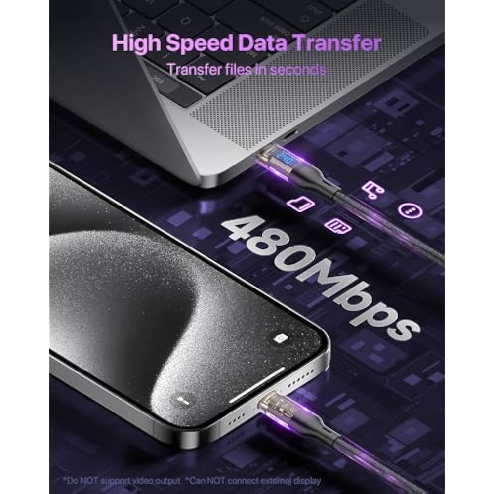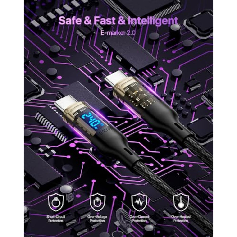 | One For All - The 240W Usb C To Usb C Cable Can Charge All Your C-Port Devices And Replace All Your Usb C Cables. Backward Compatible With Lower Power Requirements Like 180W/140W/100W/60W And Below. | | Less Waiting More Efficiency - Featuring The Latest Pd 3.1 Technology, It Upgrades The Maximum 48V/5A Power Supply Under The Usb Pd Protocol . The 240W Cable Make Sure To Charge Your Devices At The Fastest Possible Speed And Save Your Precious Time. | | Intelligent Power Display- The Well-Liked Led Display Making Charging Visible, It Shows The Real Time Wattage In Charging. It Also Signifies A Changing Process Of Wattage And Helps You Monitoring The Charging Status Of Your Device Anytime. | | Safe Reliable - Featuring With The Smart E-Marker 2.0, It Automati