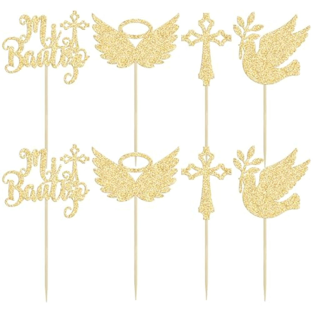 | --Package Included: 24Pcs God Bless Cupcake Toppers. Comes With Assembled, So You Can Insert Into Your Cake Directly, Which Make Your Cake More Interesting. | | --Premium Material: This Glitter God Bless Cupcake Toppers Are Made Of High Quality Paper And Food-Grade Toothpick, Very Safe To Put Them On Cakes, Cupcakes, Ice Cream, Fruits, Pie, Dessert, Cheese Or Any Dish And Food Appetizer You Want To Decorate. | | --God Bless Cupcake Toppers Are So Cute And Good For Baby Shower Theme Party, Christmas Theme Party, First Communion Or Confirmation Event, Birthday Party Cupcake Decorations. Make Any Plain Looking Cake Creative. | | --Widely Application: Unique Personalized Propose Christening Theme Design. Best Party Cake Decor Which Can Be Used At God Bless Theme Birthday Baby Shower Party, Wedding Anniversary Party, And Other Similar Theme Parties. | | --Tips: Designed For Single-Sided, The Backside Is Plain White. Only For Decoration Purposes, This Is Not Edible And Please Do Not Use It In Oven Or Microwave. | |