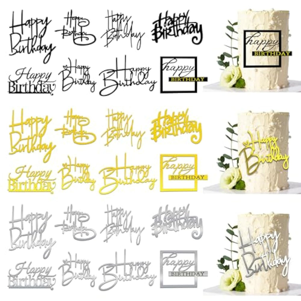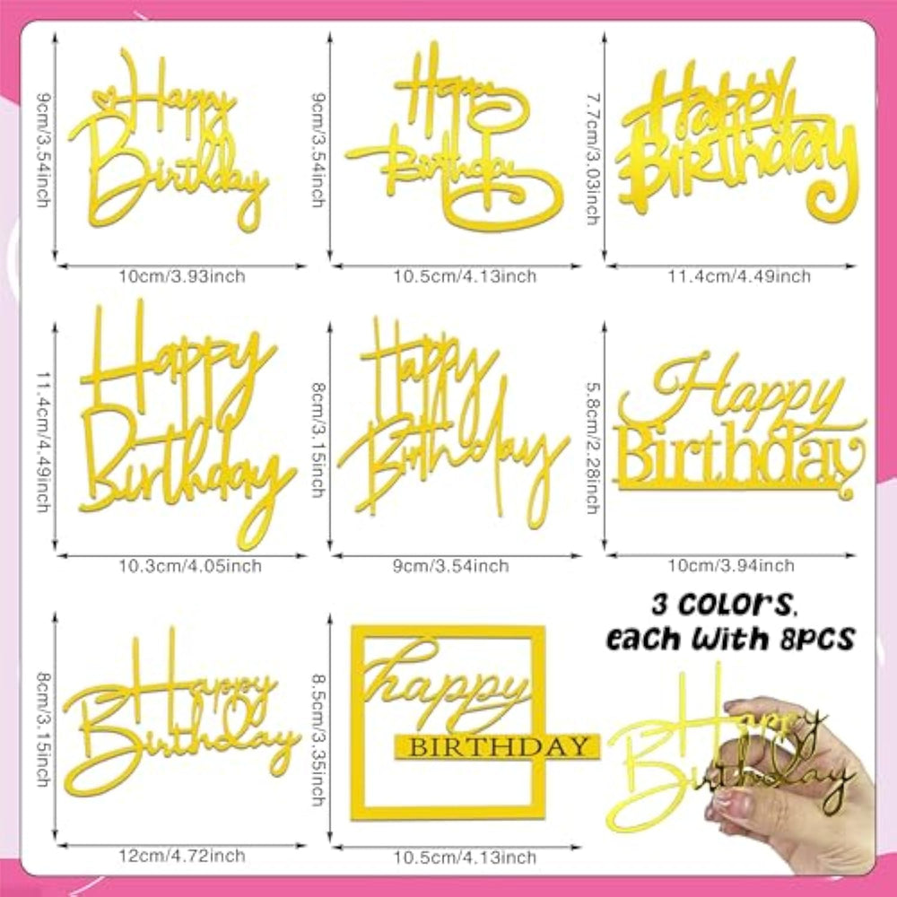This set includes 24 colorful happy birthday cake toppers in 8 unique styles providing plenty of options to decorate your cakes and cupcakes with festive flair for any age group. Each glitter birthday topper measures approximately 3.5 inches wide by 3 inches tall making them ideal for most cakes and desserts. Perfect for birthdays weddings graduations anniversaries and holiday celebrations these versatile toppers can also be used as food picks for cupcakes appetizers fruits or party snacks adding a cheerful touch to your special occasions.