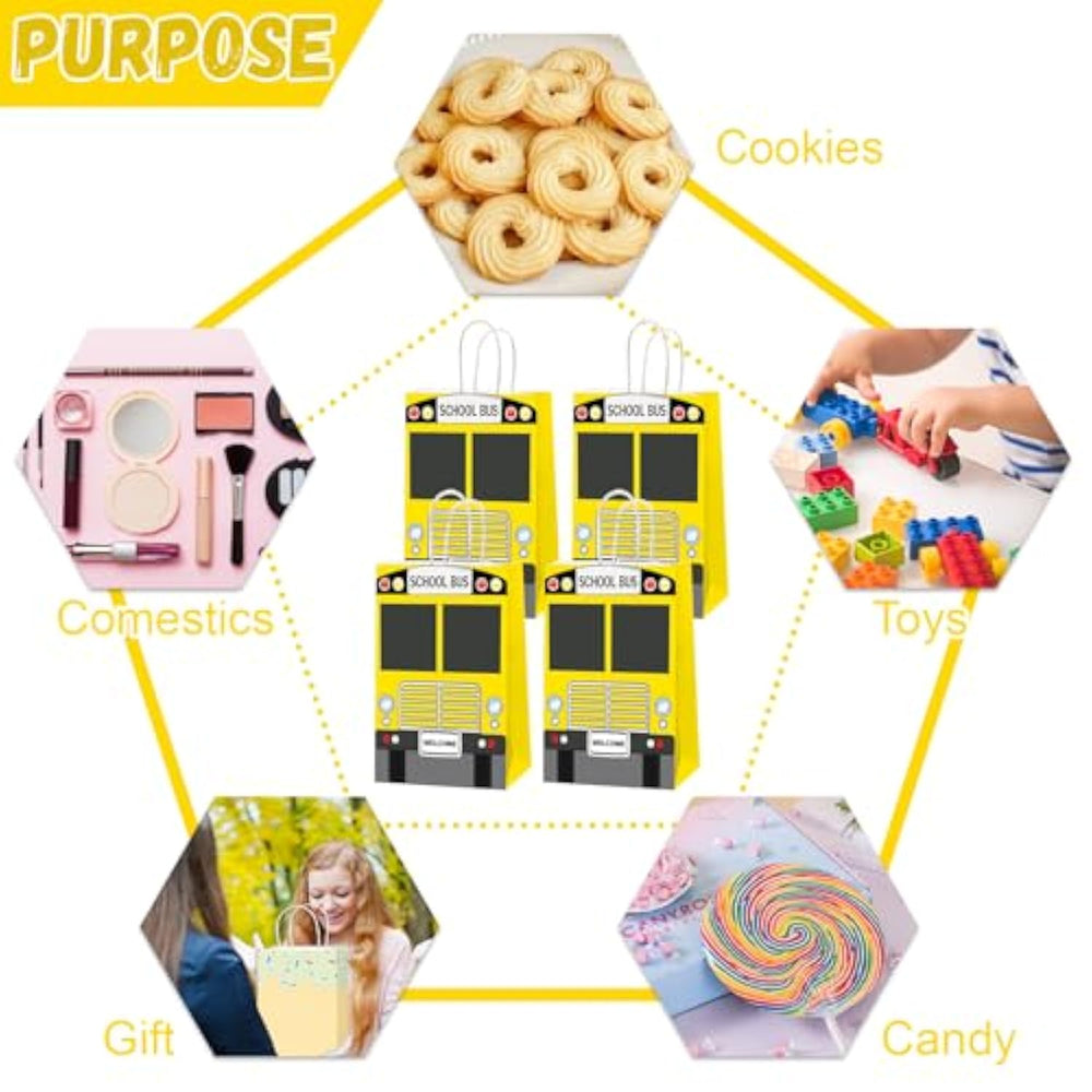 | Package Includes: You'Ll Get 24Pcs Of School Bus Party Gift Bags With Handles. The Size Is 8.3 X 5.9 X 3.1Inches. School Bus Paper Snack Bags Add An Element Of Surprise And Delight, Enhancing The Overall Gifting Experience, And Making The Recipient Excited When They Open The Treat Inside. | | Charming School Bus Design: These Gift Bags Feature An Adorable And Vibrant School Bus Design That Instantly Captures The Attention Of Kids And Sets The Party Mood. The Charming And Cheerful School Bus Image Creates A Delightful And Engaging Atmosphere For Celebration, Making It Stand Out Among Other Presents. | | Durable Material: The Welcome Back To School Party Candy Goodie Bags For Kids Are Made Of Durable Paper Materials, Ensuring That They Can Hold Different Types Of Gifts Without Tearing Or Breaking. The Handles Are Also Well-Constructed, Providing A Secure Grip When Carrying Heavier Items. | | Wide Application: These Yellow School Bus Party Favor Bag Decoration For Student Are Suitable For Various Occasions And Events, Not Limited To School Bus-Themed Parties. They Can Be Used For Birthday Parties, Classroom Celebrations, School Events, Wheels Bus Bday Party, School Open Day, Back To School Party, Or Even As Lunch Or Snack Bags For School Outings Or Picnics. | | Easy To Use And Carry: These Welcome Back To School Party Treat Bag Supplies For Kids Are Convenient For You To Put In Or Take Out Items, Suitable For Storing Candies, Cookies, Toys, Small Gifts, Party Favors, And More, Making Them Versatile And Practical For Any Celebration. | |
