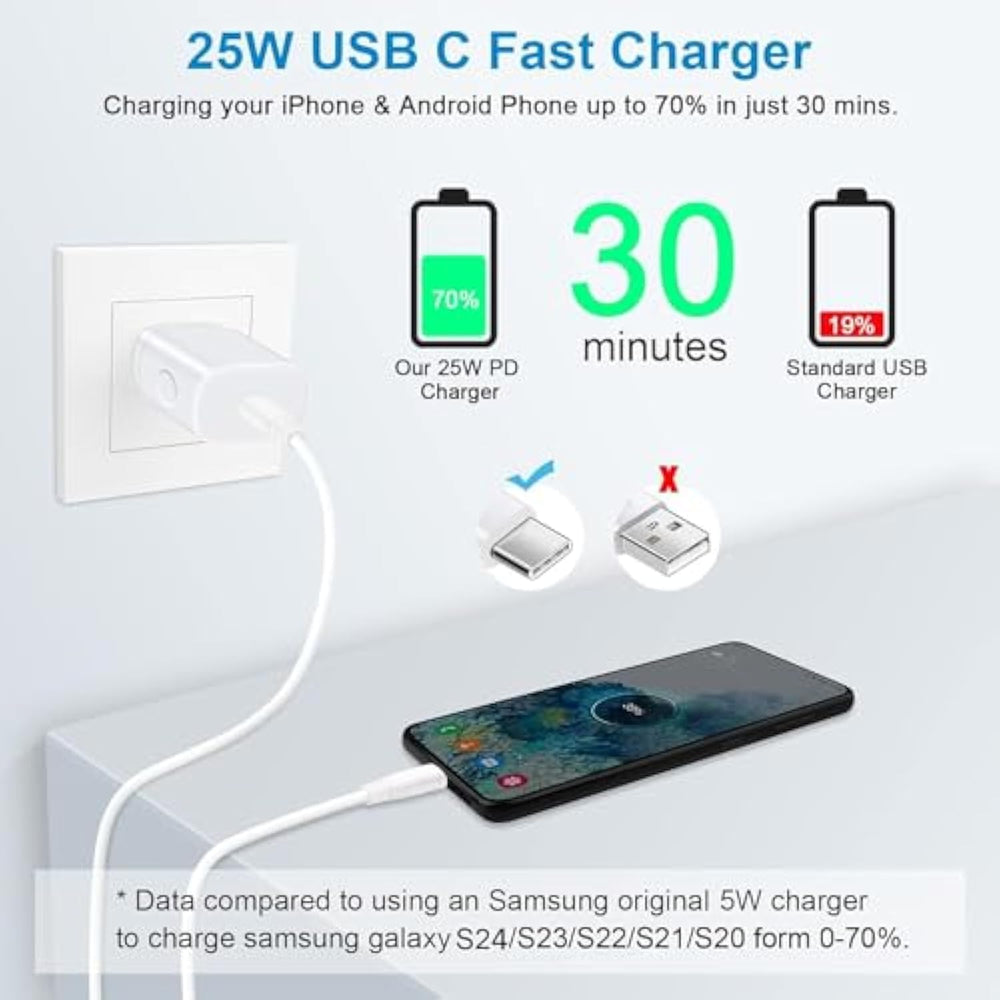 | Super Fast Charger For Google: Equipped With A Pps/Pd Type C Port, With Adaptive Fast Charging Pps Technology, Usb C Wall Charger Block Perfectly Supports 25W Super Fast Charging For Google/Motorola, Charging Google Pixel 9 Pro 8A 8 Pro 7A 7 Pro 6A 6, Moto G Power 2024,G Stylus 2024,G Pure,G Play(About 3A) From 0% To 100% In Just 1H; Save Up To Over 1 Hour In Charging. This 25W Super Fast Charger Charges Your Phone To 70% In Just 30Min, 5 Times As Fast As A Standard Usb C Wall Charger | | Super Fast Type C Charger: The Google Pixel 9 Pro Charger For Google Pixel 10/10 Pro/10 Pro Xl/10 Pro Fold/9 Pro Xl/9 Pro/9/9 Pro Fold/8A/8/8 Pro/7A/7/7Pro 6A/6 Pro/6/5A/5 4A/4 Xl/4/3A Xl/3A/3 Xl/3/2 Xl,Samsung Galaxy S25,S25 Ultra,S25+,S24,S24 Fe Ultra,S24+,A17 A56 A36 A26 A16 A35 A55 A15 A25 A54 5G A14 A13 A53 A34, S23/S23 Fe Ultra/S23+/S22 Ultra,S22+ S22,S21+/S21 Fe/Ultra/S21,S20 Fe/Ultra,S10E S10 S9 S8 Plus,Z Flip 6/5/4/Z Fold 6/5/4,Note 20 10 9 8,A04S A03S A02S A12 A32 A52 A72 A11 A51 A71,Moto G Pure,G Stylus,G Fast,G Power 2024,Edge+,G Play,Lg Stylo 6 5 4,Etc | | Safety Assurance: The Usb C Power Adapter Charger Plug Is Certified By Ce, Fcc, And Rohs. The Usb C Pixel 9 7 Fast Charger Is Built In Intelligent Chips, Which Can Protect Your Devices Against Damage Caused By Short Circuit, Over-Current, Over-Voltage, Over-Heating, And Over-Charging Issues. Usb Type C Charging Box Automati