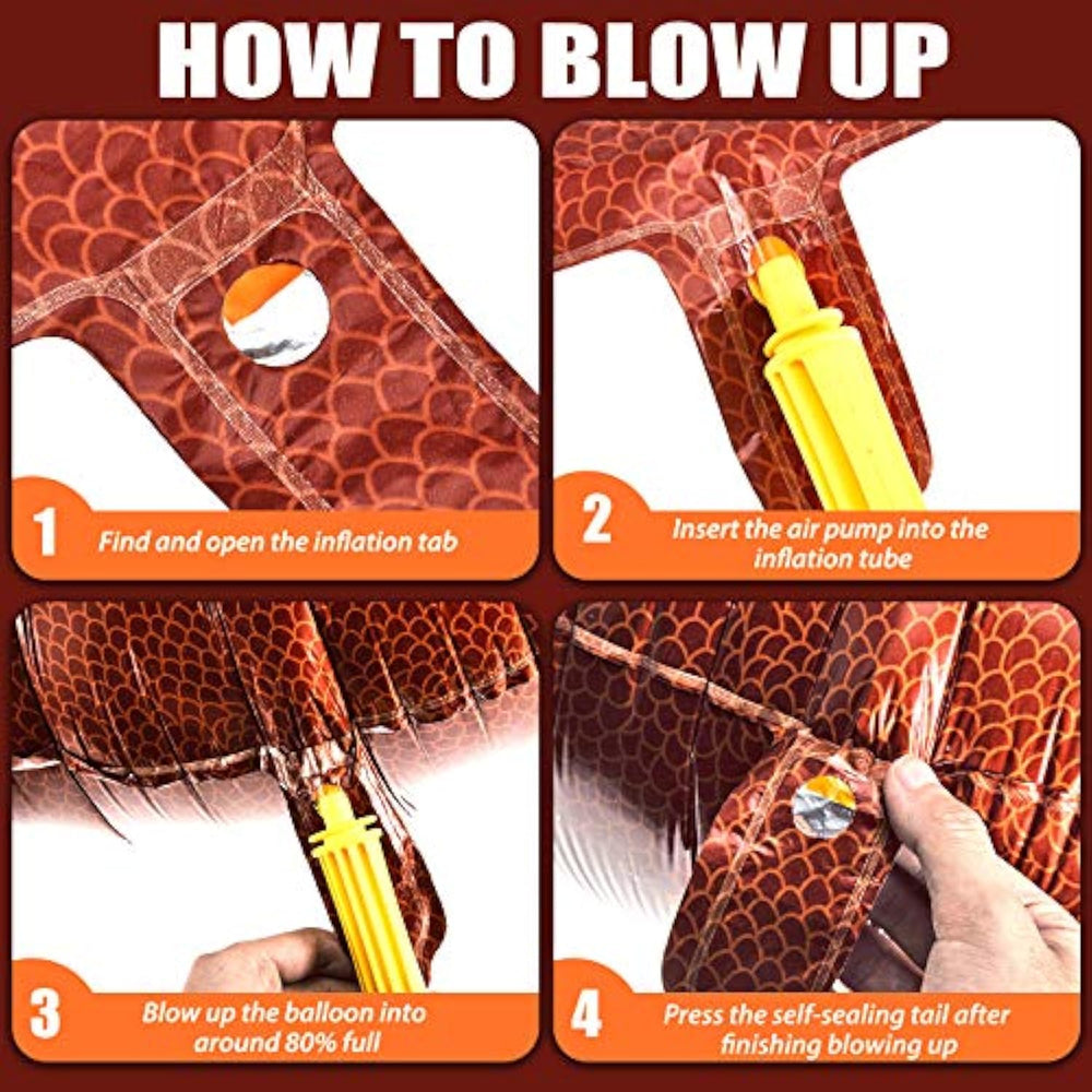 | Sturdy And Reliable: Football Balloons Are Made Of Quality Aluminum Foil, Durable Material With A Certain Degree Of Thickness, Non-Toxic And Sturdy, Won'T Burst Suddenly; They Can Support For Both Air And Helium Inflation, Both Can Fly | | Where To Use: These Football Theme Balloons Are Nice Party Decorations For Football Theme Party, Birthday Party, Sports Game Day, Get-Together, Thanksgiving, Christmas, Home Parties, Festivals, Catering, And Other Outdoor Events | | Foldable And Reusable: Just Use A Plastic Pipette To Release The Gas From The Party Balloon Until The Gas In Completely Released, And You Can Fold It And Store For Next Use | | Size Information: Each Foil Round Balloon Is Approx. 18 Inch In Diameter, And The Football Balloon Is Approx. 20 X 26 Inch, Large Size With Pretty Appearance Can Quickly Attract Your Guests' Attention, Lightweight, Convenient To Inflate And Hang | | Automati