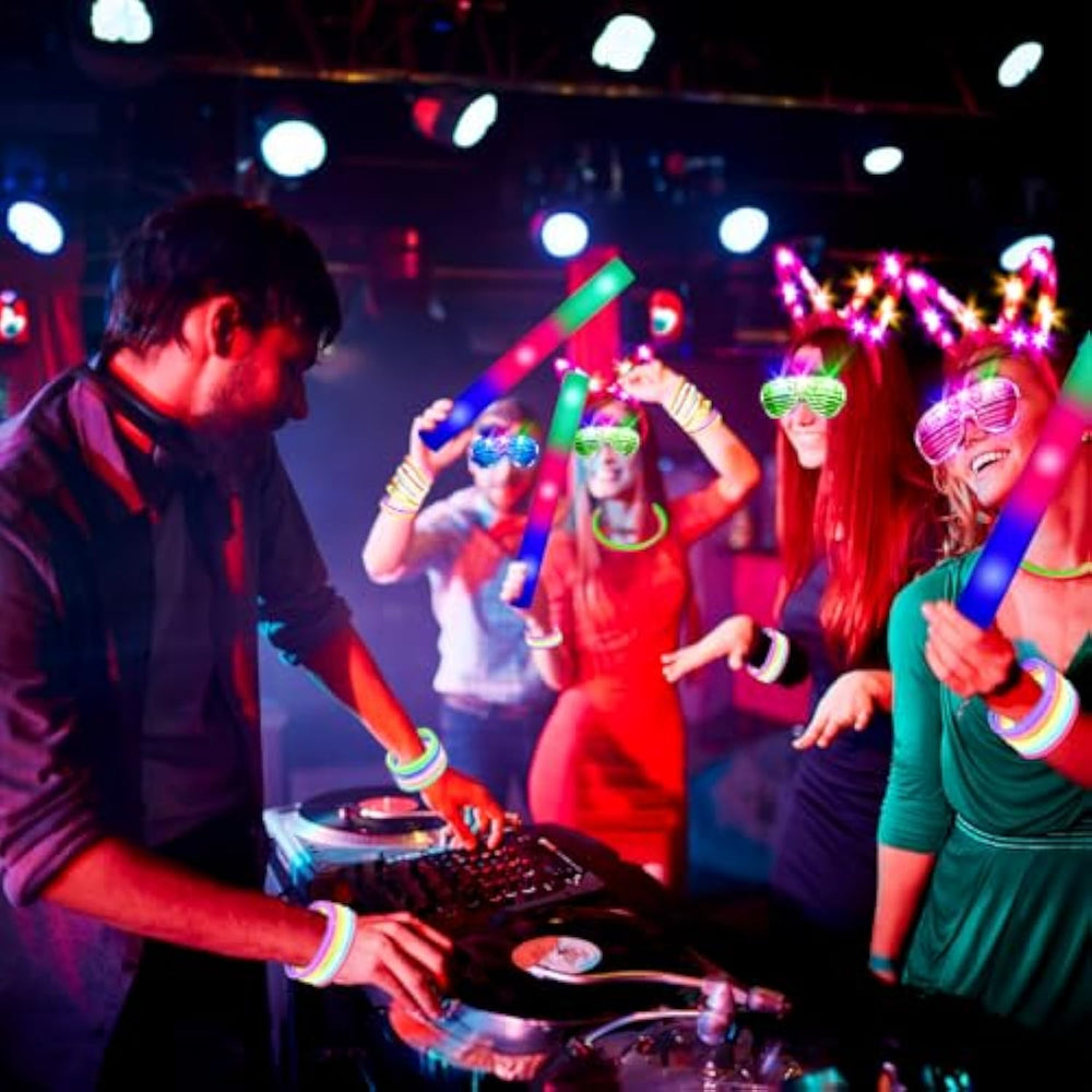 | Glow Stick Bulk Party Pack: Our Set Includes 20 Foam Glow Sticks, 200 8" Glow Sticks, 20 Bunny Ear Headpieces And 20 Led Glasses, Under Normal Circumstances. They Can Last For More Than 7 Hours, Make Your Party Unforgettable, Bright Colors With Flashing Lights Are Awesome For Adults And Kids. | | Excellent Safety And Quality: These Colorful Led Party Favors/Supplies Are Made Of High-Quality, Lead-Free Plastic And Conform To The Highest Safety And Quality Standards. They Can Withstand Stretching, Twisting, And Turning Thanks To Their Durable, Thick, And Resilient Materials. Their Sturdy Design Makes Them Harder To Snap So They Don'T Easily Break And Start Leaking Like Similar Products On The Market. | | Long Lasting Party: 20 Bunny Ear Headpieces And 20 Neon Glasses All Feature 3 Flashing Modes And 5 Colors.20 Pack Super Bright Glow Sticks Are 8" Long With Connectors, Can Be Made Into Any Shape You Want, Whether You Are Into Bracelets And Necklaces. 20 Giant 16" Foam Glow Sticks Are Made From Pro-Environment Soft Foam And High-Quality Plastic, With 3 Modes Colorful Flashing. | | Neon Party Supplies : This Glow Stick Party Pack Is Perfect For All Kinds Of Occasions, Including Birthdays, Weddings, Pool Party, Concerts, Camping,Graduation Parties, Raves, Sporting Events, Theme Parks, 4Th Of July Party, Halloween, New Years Eve Party Supplies, Christmas Or Stocking Stuffers For Both Adults And Kids! You'Ll Be Thrilled By How They Light Up The Dance Floor, Making Every Gathering A Sensational Party Experience. Also Is Great Party Gifts For Kids. | | Long Lasting Glow, Reliable Buy: Light Up Toys Will Add More Fun To Your Parties. Large-Capacity Battery To Keep Sparkling At Glow Parties, Any Questions Or Dissatisfied With Your Purchase, Please Feel Free To