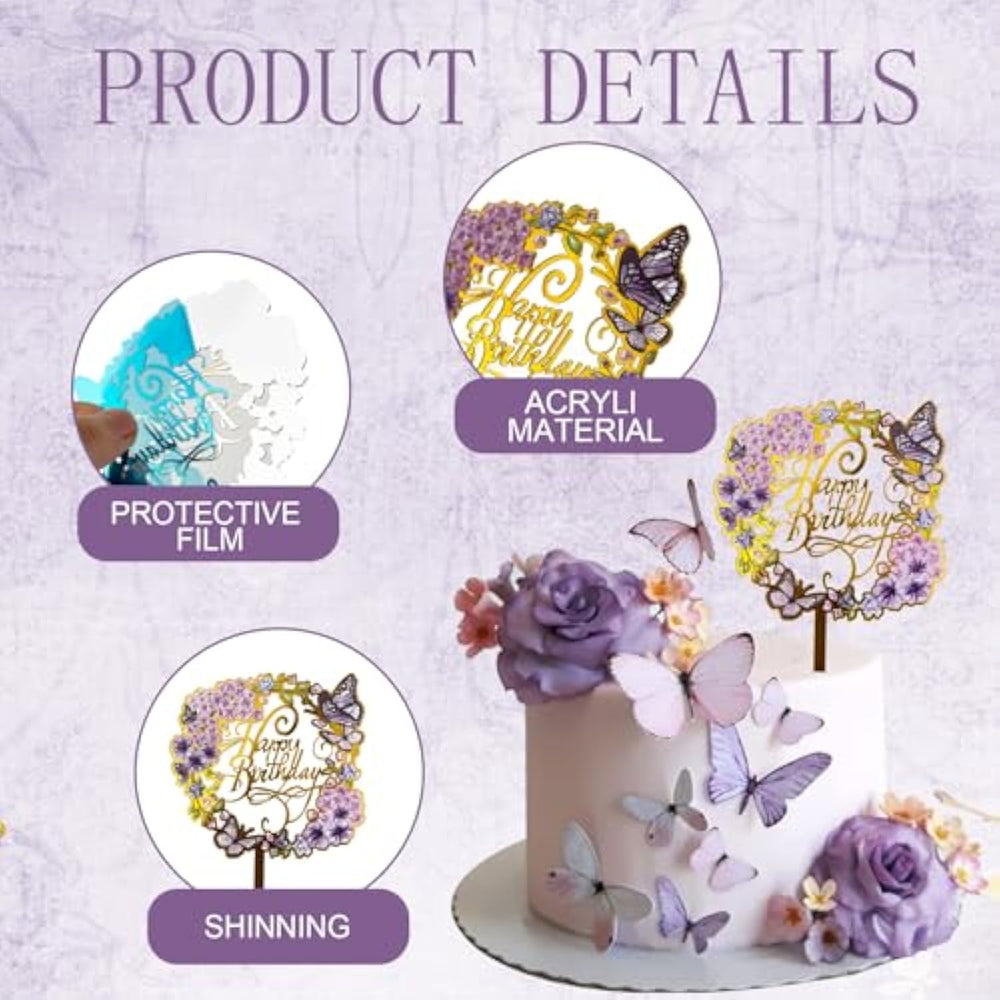 | ?Cake Toppers Set?You Will Get 2 X Purple Palm Leaves,1X Purple Roses,1 X Pink Rose,10 X Purple Balls,10X Purple Butterflies,2 Xartificial Flowers Phalaenopsis,1X Happy Birthday, Suitable For Over 8 Years Old.The Specific Dimensions Are Shown In The Drawing | | ?Flower Cake Toppers?These Flower Cake Topper Are Made Of Artificial Plants And Silk Flowers, The Happy Birthday Cake Topper Is Made Of Acrylic. The Butterflies Are Made Of Paper.All Materials Used Are Safe, Non-Toxic,Not Easy To Deform Or Break, Bring You The Great Decorative Effect | | ?Delicate Cake Decorations?Our Cake Topper Has A Harmonious Color Combination,Creatively Designed With Palm Leaves And Flowers,Add A Natural And Relaxed Touch To Your Cake.It Will Definitely Leave You With An Unforgettable Memory | | ?Wide Application?Our Flower Cake Decorations Can Be Applied For Home Decorations,Suitable For Birthdays, Baby Showers, Weddings, Anniversaries,Flower Theme Parties, Holidays And Other Important Celebrations,Cake Cupcake Decoration Will Make Your Birthday Cake Shiny And Charming | | ?Stimulate Creativity?Make Your Great Cake Through Diy,Inspire Imagination And Creativity In The Process Of Making Cakes By Yourself, Making Your Cakes More Meaningful.Not Suitable For Children Under 6 Years Old.Children Should Use It Under Adult Supervision To Prevent Accidental Ingestion | |