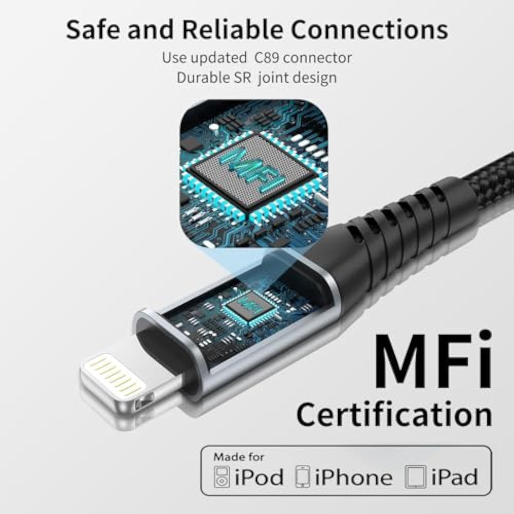 | ?High-Speed Charging?This 2Ft Usb To Lightning Cable Features A High-Purity Copper Core And Intelligent Chip, Providing Overcharge Protection, Stable Current Protection, Automatic Switching, And Battery Protection. Supporting Fast Charging Up To 2.4A, This Short Phone Charging Cord Ensures Your Devices Charge Safely And Swiftly | | ?Mfi Certified Carplay Support?Certified As An Iphone Charger For Lightning Devices, This Cable Is Built With The Original Chip To Prevent Any Warning Messages, Ensuring Safe And Rapid Charging At Maximum Speed. It Fully Supports Carplay Functionality, Enhancing Your In-Car Experience Seamlessly | | ?Unmatched Durability?Crafted With A Sturdy Nylon Braid, This Lightning Cable Protects The Internal Cable While Ensuring Longevity, Flexibility, And An Elegant Design That Surpasses The Original. Withstanding Over 10,000 Plug And Unplug Cycles And Boasting A Remarkable 20,000 Bending Lifespan, It'S Built To Last. The Seamlessly Laser-Welded Connector Can Handle Up To 450Lbs Of Force, Making It More Durable Than Other Charging Cables | | ?Wide Compatibility?Compatible With All Lightning Ios Products, Including Iphone 14/14 Plus/14 Pro Max, Iphone 13/12/11/Pro Max/Mini, Iphone Xs/Xr/X/Se, Iphone 8/7/6/Plus. Also Compatible With Ipad, Ipods, And Airpods | | ?What You Get?3Pack 2Feet Usb A To Lightning Braided Cable And 12-Month After-Sales