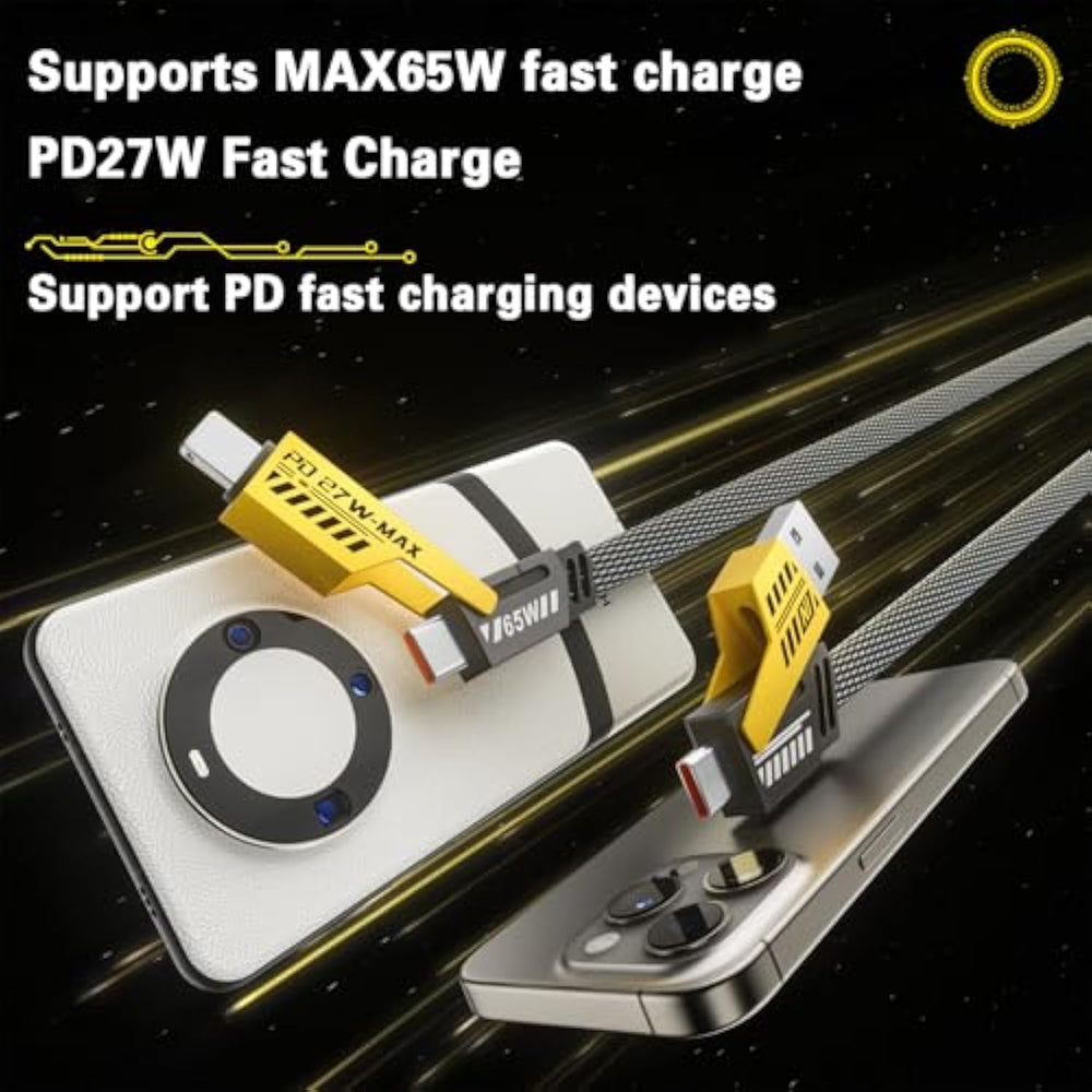 | ?Multi Charging Cable?The 4 In 1 Usb Charger Cable Comes With Usb A, Usb C, Phone Port. When You Are In A Car, Office And Traveling, You Only Need One Multi Usb Cable Wire To Charge All Smartphones. It Could Also Be A Usb To Usb Power Adapters. | | ?100W Fast Charging Data Transfer?This Charger Cord Provides Up To 100W Output. The Phone Can Be Charged Up To 60% In 25 Minutes. In Addition, 4 In 1 Charging Cable Also Supports Data Transfer, 1G File Transfer Takes Only 18 Seconds. | | ?Carplay Android Auto Support?This Multi Charging Cable Supports Carplay Android Auto, Navigating And Charging At The Same Time. No Matter What Phone Your Family And Friends In The Car Are Using, Cable Charging All. Make Life More Convenient. | | ?Anti-Tangle Easy To Store?The Flat Design Of The Charger Cord Prevents Tangles And Knots. In Addition, The Cable Comes With Velcro, Which Keeps Cable Well Organized When Not In Use. | | ?Charge Without Taking Case Off?: Our Connector Is 2Mm Longer Than The Regular One, Making It Easy To Charge Without Removing The Phone Case, And Protecting The Usb-C And Fast Charging Connectors. | |