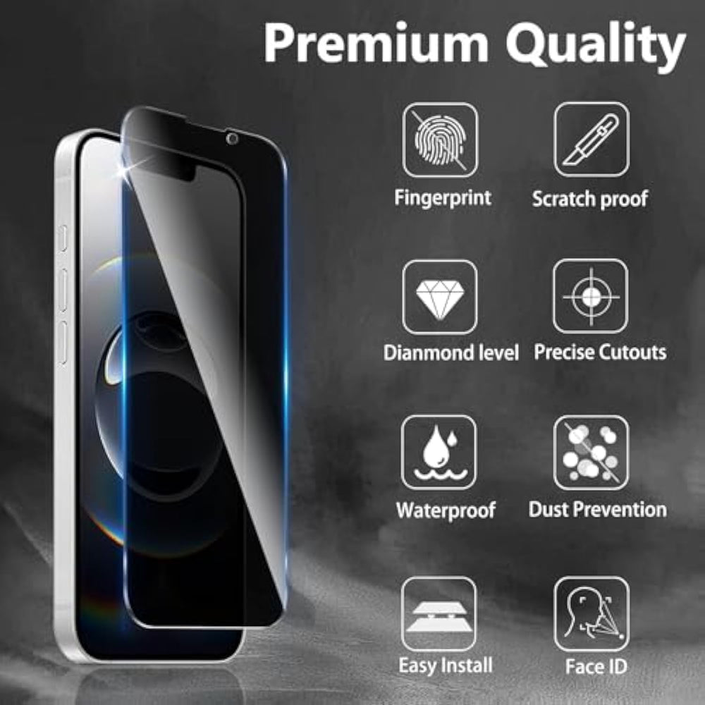 | [Designed For Phone] - This Privacy Tempered Glass Screen Protector Is Specially Designed For Iphone 16E, Include 3 Pack Privacy Screen Protectors With 3 Pack Camera Lens,Perfectly Fits Your Screen And Offers Great Protection To Your Phone | | [Anti-Spy Tempered Glass]? - Keeps Your Personal, Private, And Sensitive Information.Effectively Protect Your Privacy From Peeping(Note: Due To This Privacy Cover Will Darken The Image, You Might Need To Turn Your Device Display Brightness Up A Bit) | | [Shatterproof And Scratch-Resistant]?- 9H Hardness Laser Cut Tempered Glass,Superior Scratch Resistance And Durability.Protecting Your Screen From Daily Wear And Tear Like,The Strengthened Edge Design Ensure The Corners Of The Screen Are Protected Well | | [Anti-Fingerprint]?- This Privacy Glass Screen Protector Is Coated With A Hydrophobic And Oleophobic Clear Layer Making It Anti-Fingerprint And Smudges.The Protector'S Oleophobic Coating Repels Fingerprints, Smudges, And Oil, Keeping Your Screen Pristine | | [Case Friendly]?- Extra Space Is Left Around The Borders For The Case To Wrap Around The Edges Of Your Mobile Without Interfering With The Screen Protector, Compatible For Most Cases.2.5D Rounded Edge Glass For Comfort On The Fingers And Hand | |
