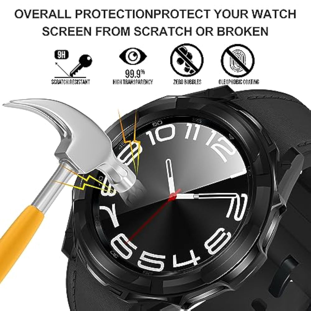 | ?Compatible Model?Only Fit For Samsung Galaxy Watch 6 Classic 43Mm.Tempered Glass Screen Protector + Hard Matte Tpu Watch Cover,Offer Full Protection Sercure.Let You Have A New Experience.Please Confirm The Model Size Before Buying. | | ?Product Material?Watch Cover Made Of High-Quality Hard Matte Tpu Material,With Tempered Glass High-Definition Transparent Film,Gives You A Better Feeling Than A Bare Screen.99.99% High-Definition Clear Hydrophobic And Oleophobic Screen Coating Protects Against Sweat Dirt,Dust And Oil Residue From Fingerprints. | | ?Product Features?Screen Protector Made Of High-Quality 2.5D 9H Tempered Glass,It Is Scratch-Resistant And Shatter-Resistant,Sensitive Performance Delivers An Original Feeling To You,Increased Electrostatic Adsorption.Watch Cover Full Edge Protection,Easy To Install/Precise Cutout Design Allows You To Easily Access All Buttons. | | ? Kit And Installation?Hd Screen Protector*1,Case*1 And Installation Instruction.Warm Reminder:We Recommend That You Clean The Screen Before Installation,And Then Patiently Stick The Tempered Film On The Lens Screen To Achieve Bubble-Free Installation. | | ?After-Sale Service?If You Have Any Questions Or Product Problems,Welcome To