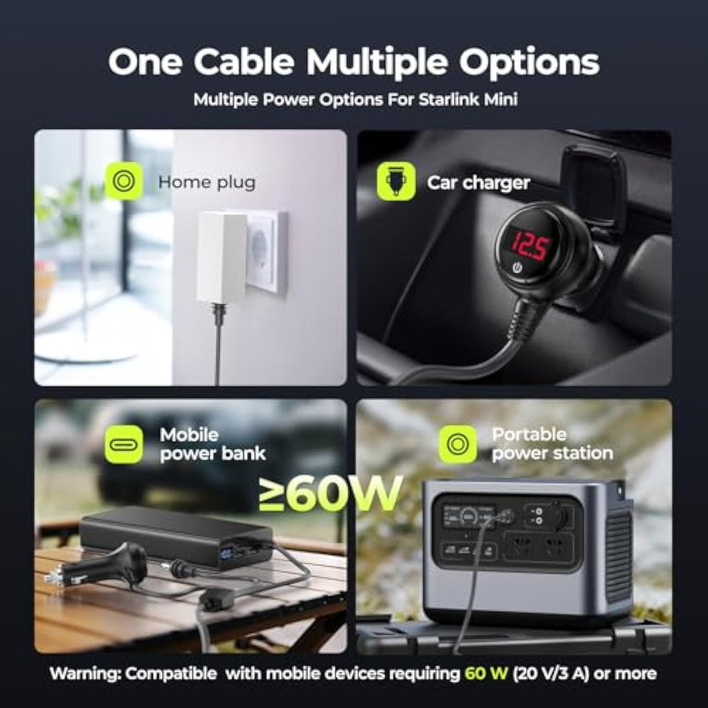 | ?? Important Power Note: To Power Your Starlink Mini With This Starlink Mini Usb C Cable, Please Use A Pd Power Source Of At Least 60W (20V/3A) Or Higher. Lower-Wattage Chargers Will Not Work Properly And May Cause Connection Issues. | | 3-In-1 Versatile Starlink Mini Cable:This Upgraded 3-In-1 Starlink Mini Cable Combines Usb-C To Dc, Starlink Mini Car Adapter, And Dc-To-Dc Power Cord In One, Covering All Your Charging Needs. It Saves You Money And Eliminates The Hassle Of Buying Multiple Starlink Mini Accessories. | | Simple Plug Play Installation: Just Connect To Your Vehicle’S Cigarette Lighter Or Usb-C Power Source, And You’Re Ready To Go. This Starlink Mini Car Charger Offers Hassle-Free Setup Without Extra Tools Or Adapters. | | Perfect Fit For Starlink Mini: Designed As A Reliable Replacement, This Cord Works Seamlessly With The Starlink Mini Satellite Dish. An Essential Upgrade Among Starlink Mini Accessories For Anyone Who Travels, Camps, Or Works Remotely. | | Durable Long-Lasting Build – Reinforced Connectors And 18Awg Wiring Ensure This Starlink Mini Power Cable Performs Safely And Reliably. A Must-Have Starlink Mini Car Charger That Delivers Consistent Power Wherever Life Takes You. | | Ip65 Waterproof Outdoor Ready: Built With Premium Materials, This Starlink Mini Car Adapter Resists Water, Dust, And Tough Conditions. A Durable Starlink Mini Usb C Cable You Can Trust In Rvs, Trucks, And Camping Setups. | |