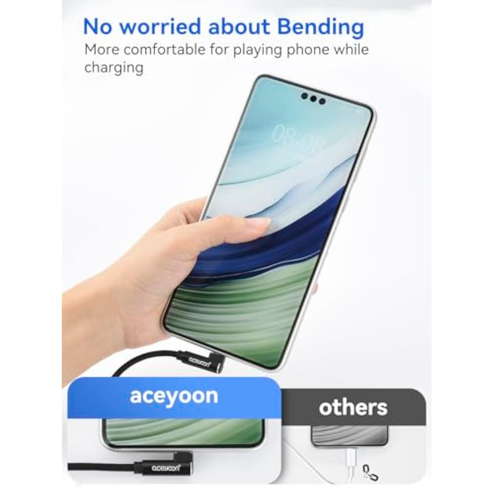 | ?90 Degree Usb C Cable?: 90 Degree Angle Design, Corresponds To Ergonomics, Which Is Very Suitable For Play Mobile Games While Charging Mobile Phones. If You Play Video Games Or Watch Films, It Is More Convenient To Charge Your Phone Without Bending Cables. | | ?Fast Charging And Synchronizing?: This Long Usb C Type Right -Angle Copper Core Charging Cable Has 2.4A Large Current, Benefits From This Fast Charging, You Can Not Only Improve Charging Efficiency, But Also Can Quickly Transmit Hd Photos, Movies And Other Large Files. | | ?Wide Compatibility? : This Usb Charging Cable Can Support The Charging And Data Transmission Of Most Type Devices, Compatible With The Galaxy 520/520+ Ultra 59 59 58 Note 10 9 8, Moto Z/Z2, Lg G5/G6// V20/V30 And Other Usb-C Devices. | | ?Long Service Life?: The Usb C Cable Is Made Of Nylon Woven And High -Quality Aluminum Alloy Connector. This 90 -Degree Type C Cable Is Durable And Scratch -Resistant. The Connection Of Your Device Is Free Of Damage When Inserting And Pulling Out The Plug. | | ?What Will You Get?: 3Pcs Usb C Data Cables Angle (0.6Ft) And Our High Quality After Sale, If You Have Any Questions, Please