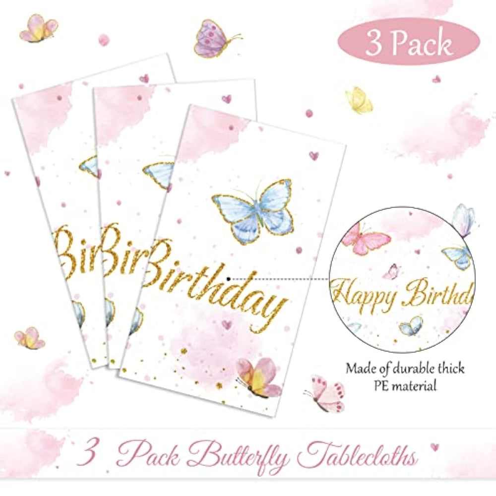 Enough Quantity And Large Size: You Will Get 3 Packs Of Plastic Butterfly Tablecloths, The Size Is Approx. 274 X 137 Cm/ 108 X 54 Inches, Large Enough For Most Dining Tables, Can Accommo 8 To 10 Guests, The Sufficient Quantity Can Easily Meet Your Daily Use And Changing Needs | Butterfly Themed Design: This Plastic Butterfly Party Tablecloth Is Designed With Watercolor Pink Flowers, Elegant Purple Butterflies, Golden Eye Catching Fonts, It Will Attract People'S Attention And Add More Fun Atmosphere To Your Party | Quality Material: This Large Butterfly Birthday Table Cover Is Made Of Quality Plastic, Safe And Reliable, Waterproof And Sturdy, Not Easy To Break, Light And Portable, Smooth Surface And Easy To Clean, Which Can Effectively Keep Your Table From Scratches And Stains | Easy To Clean: These Butterfly Table Covers For Birthday Party Are Made Of Disposable Plastic, So You Don'T Need To Worry About Cleaning Up After The Party, Just Throw It In The Trash, Will Save You Time And Effort, Allowing You To Fully Enjoy Your Celebration With Family And Friends Time | Wide Application: These Butterfly Themed Table Cloth Are Suitable For Many Parties, Such As Birthday Parties, Butterfly Themed Parties, Baby Showers, Wedding Parties, Etc., To Add A Romantic And Sweet Atmosphere, They Are Also Suitable As Wonderful Gifts For Family And Friends |