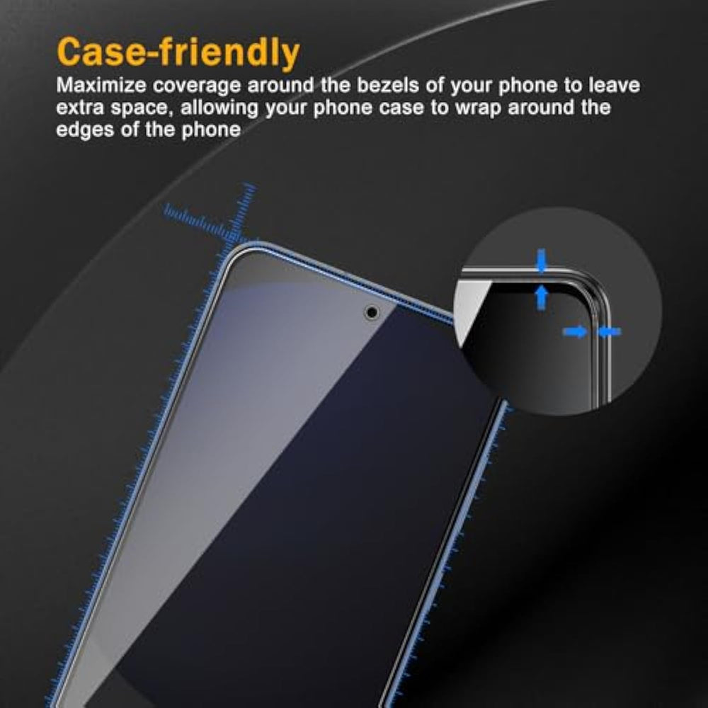 | Compatibility?Designed For Samsung Galaxy S24 Fe. Includes 3 Packs Of Privacy Tempered Glass Screen Protector, 3 Packs Of Camera Lens Protector And 3 Packs Of Cleaning Kit , Please Check Your Model And Size Before Purchasing | | Upgraded Privacy Screen Protector?Samsung Galaxy S24 Fe Privacy Tempered Glass Keeps Your Personal And Sensitive Information Safe From Strangers, Screen Is Only Visible To Persons Directly In Front Of Screen | | Impact And Scratch Protection?Top-Quality 9H Hardness Tempered Glass Screen Protector And Camera Lens Protector Are Nearly Impossible To Scratch And Will Help Protect Your Screen And Camera From Breaking And Scratches | | Case Friendly?Samsung Galaxy S24 Fe Screen Protector For Extra Space Is Left Around The Borders For The Case To Wrap Around The Edges Of Your Mobile Without Interfering With The Screen Protector And Camera Lens Protector, Compatible With Most Cases | | Visual Clarity?The Surface Of The Protective Screen Is Treated With A Coating, Hydrophobic And Oleo-Phobic Coating Make It Anti-Fingerprint And Dirt- Proof To Keep Fingerprints At Bay As You Tap Away, Enhancing The Visibility Of The Screen | |