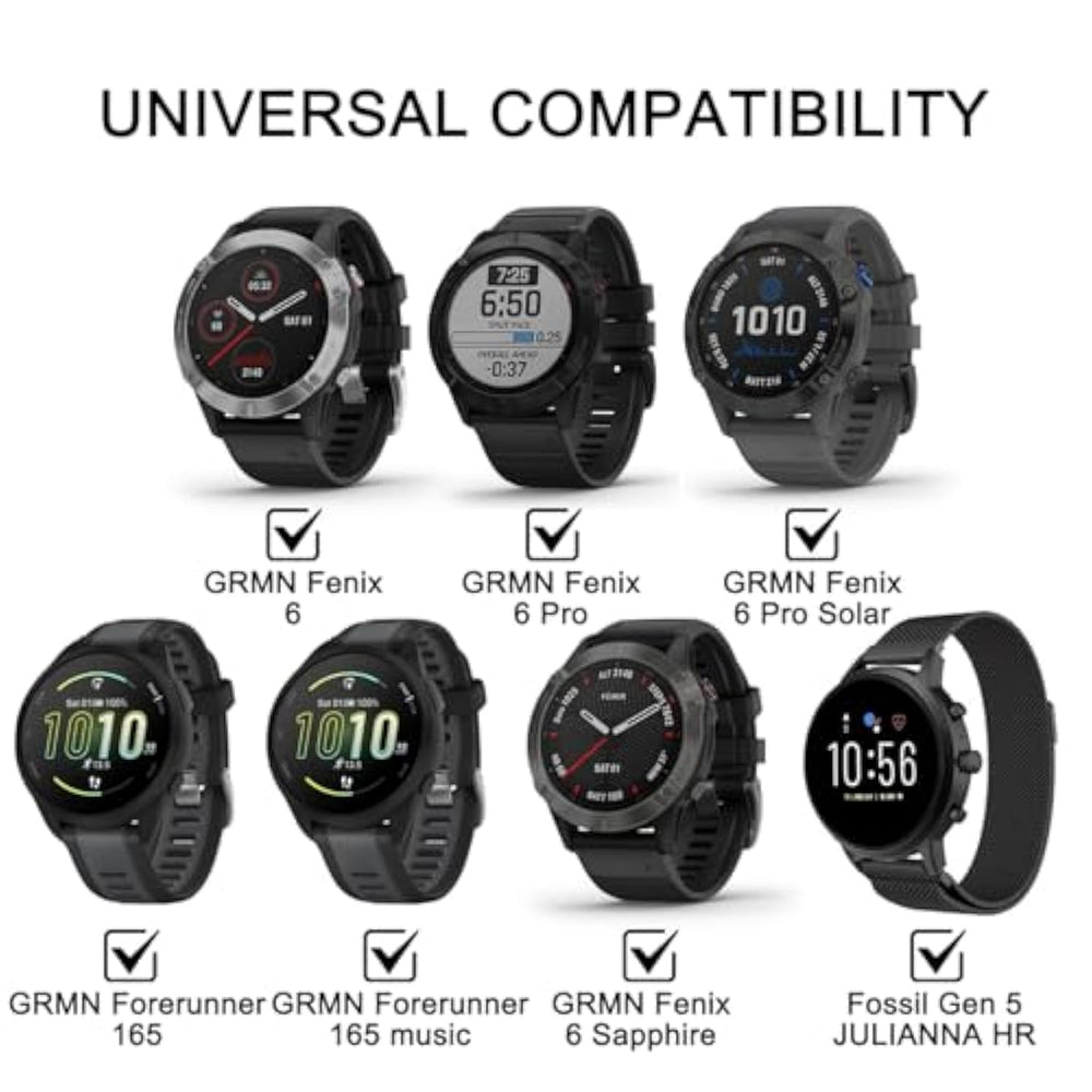| Compatibility: Specially Designed Smartwatch Screen Protector For Garmin Forerunner 165 / Garmin Forerunner 165 Music / Garmin Fenix 6 / Garmin Fenix 6 Sapphire / Garmin Fenix 6 Pro / Garmin Fenix 6 Pro Solar / Fossil Gen 5 Julianna Hr. | | Premium Material: The Screen Protector Is Made Of High Quality Glass Material. Hydrophobic And Oleo-Phobic Coatings Of The Screen Protector Protects Against Sweat And Oil Residue From Fingerprint. | | Strong Protection: 9H Strong-Hardness Prevents Scratches From Keys And Other Outside Objects. 2.5D Round Edge 99% Hd Clarity And Maintains The Original Touch Experience. | | Easy Installation: Our Screen Protector Comes With Dust Remover, Screen Wipe And Lint-Free Dry Cloth. Ensure No Air Bubbles And Easy Installation. | |