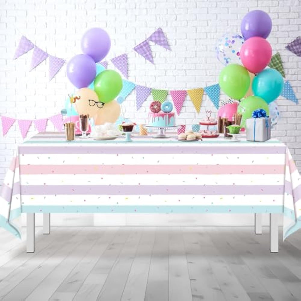 What'S Included: You'Ll Get 3 Ice Cream Sprinkle Table Cloths, Featuring Bright Colors And Decorated With Dotted Rainbow Sprinkles. These Plastic Tablecloths Will Fully Decorate Your Party Scene, Immersing Your Guests In A Sweet Atmosphere. | Classic Design: The Ice Cream Party Decorations Feature A Classic Design That Combines Classic Elements Like Rainbow Sprinkles. The Ice Cream Disposable Tablecloth Is Adorned With Vibrant Colors, Including Purple, Green, Pink, And Yellow, An Exquisite Design. It Will Certainly Add A Great Touch To Your Party. | Large Size: The Size Of Each Ice Cream Party Plastic Tablecloth Is About 54X108 Inches, Suitable For Most Rectangular 8-10 Seat Dining Tables, Can Accommo Most People At The Same Time, Brings You A Comfortable Environment When You Hold An Ice Cream Party, Make Your Party Impressive And Unforgettable. | Durable Material: Our Ice Cream Birthday Party Decorations Are Made Of High-Quality, Non-Toxic Plastic That Is Safe For Children And Adults. This Ice Cream Table Cloth Is Scratch-Resistant And Waterproof, Providing An Effective Barrier Against Stains And Spills, And Making It Easy To Clean. | Wide Applications: The Colorful Plastic Tablecloth Is Great For Your Ice Cream Themed Party, Sweet One Birthday Party, Two Sweet Birthday Party, Or Four Ever Sweet Birthday Party, Not Only As A Tablecloth Indoors And Outdoors, But Also As A Backdrop, Wallpaper, And Photo Backdrop, Or Other Use You Can Imagine. Let Your Guests Enjoy The Joyful Atmosphere. |