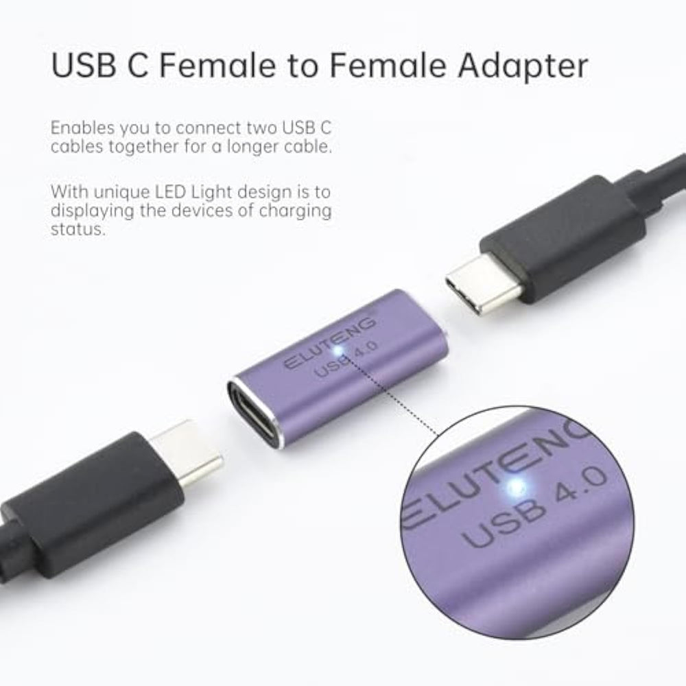 ?Usb Type C Repeater?This Usb C Connector Supports The Connection Of Two Type-C Data Cables And Provides A Cable Extension Function: Use The Usb Type C Female Conversion Adapter, Two Usb 4.0 Data Cables (Or Two Usb 4.0 Devices, With Line-In Connections At Both Ends Of The Repeater) At A Speed That Must Also Reach A Transfer Rate Of 40 Gbps). Easily Connects And Acts As An Extension Cable; Backward Compatible With Usb 3.0 And 1.1 Ports. Protects The Device'S Usb Connector From Damage Due To Long-Term Use. | | ?40Gbps High-Speed Transmission And 8K@60Hz Video Output?This Usb C To Usb C Adapter Adopting The Latest Type-C 3.2 Technology, Usb4.0 Up To 40Gbps Thunderbolt 3 High-Speed Data Transmission, Up To 4 Times The Speed Of Usb3.1 (Theoreti