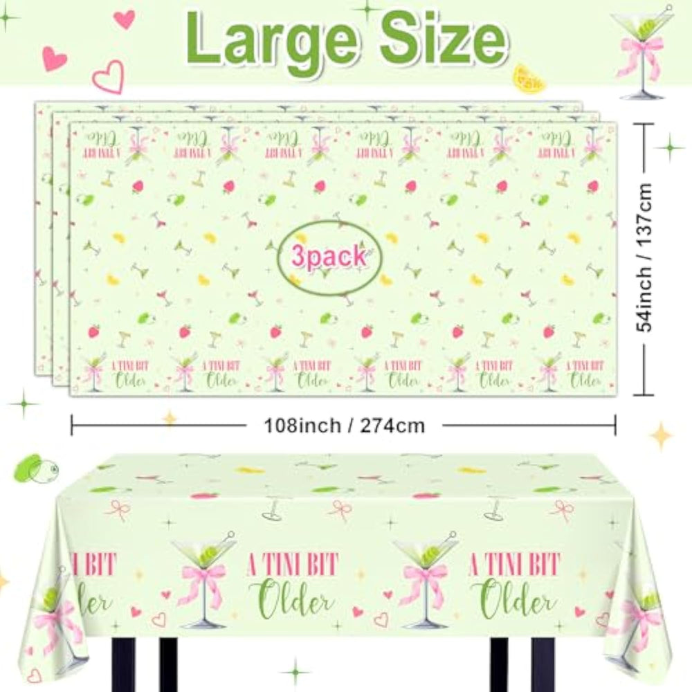 | Size Package: 3 Pieces Of Martini Tablecloth In 274 X 137 Cm / 108 X 54 Inch, Are Suitable For Tables Of All Shapes And Sizes | | High Quality Material: Our Martini Party Table Cover Made Of Waterproof Pe Material; Smooth Surface, Waterproof And Oil-Proof; Clear Printing Patterns; Not Easy To Tear | | Design Advantage: Our Martini Party Tablecloths In Pink And Lemon Green As Main Colors, With Martini Glass, Olive, Fruit, And Bow Pattern Will Add Some Playful Vibes To Your Party | | Wide Application: Suitable For A Tiny Bit Older Martini Birthday Party, Martini Cocktail Theme Party, Martini Bridal Shower, Family Gathering And More Celebration Events | | Save Time: These Martini Tablecloths Are Easy To Clean Up And Can Be Discarded Right After The Party While Saving Your Cleaning Time; Or Wipe Down And Save For Your Next Party | |