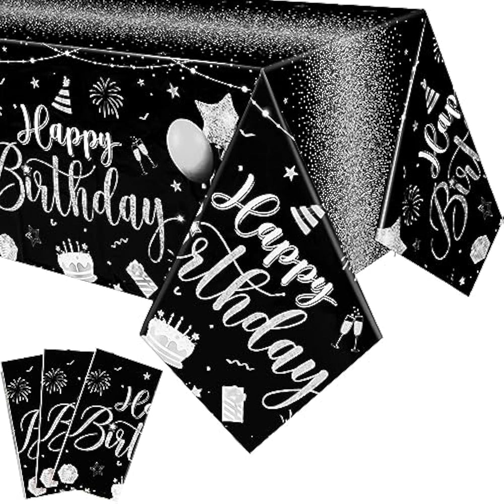 This set includes 3 black and silver happy birthday tablecloths, perfect for enhancing your celebration. Each tablecloth measures 54 x 108 inches, large enough to cover most rectangular tables and can also be used as picnic mats. Designed with festive elements like cakes, balloons, party hats, and gift boxes, the tablecloth features a gold foil accent in the center for an eye-catching look. Made of high-quality plastic, these table covers are durable, waterproof, and disposable, protecting your tables from spills and stains while ensuring easy cleanup after the party.