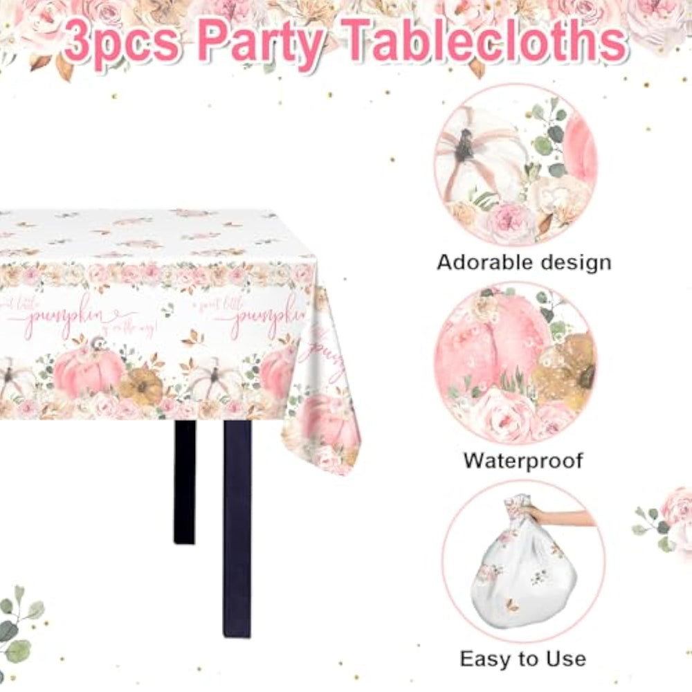 | Large Size For Your Event: The Package Includes 3 Pcs Pumpkin Girl Baby Shower Party Tablecloths, Each Size Is 108X54 Inch ( L X W ), Suitable For Most Dining Tables, They Can Be Applied For Both Indoor And Outdoor Table Decorations | | Plastic Material: The Pink Pumpkin Baby Shower Party Table Covers Are Made Of Plastic With Delicate Printing Technology; Portable, Waterproof, Splash-Proof, Protects Your Dining Tables From Juice Or Oil, Stains, Spilled Beverages, Which Is A Good Choice For Party | | Exquisite Design: This Fall Baby Shower Tablecloth Has Pink Floral Pumpkin Patterns Is Evenly Printed On The Tablecloth; It Is Very Fashion And Elegant, Adding A Party Atmosphere To Your Event | | Convenient To Use: You Can Unfold The Pumpkin Baby Shower Tablecloth Then Lay Them Flat On The Table To Decorate; Use A Dry Rag Or Paper Towel To Clean; When You No Longer Need To Use This Disposable Tablecloth, Fold It Up For Storage Or Just Throw It Away | | Wide Applications: Suitable For Girls Fall Pumpkin Baby Shower, Gender Reveals, Or Any Joyful Gathering Celebrating Baby Girls, And More Parties | |
