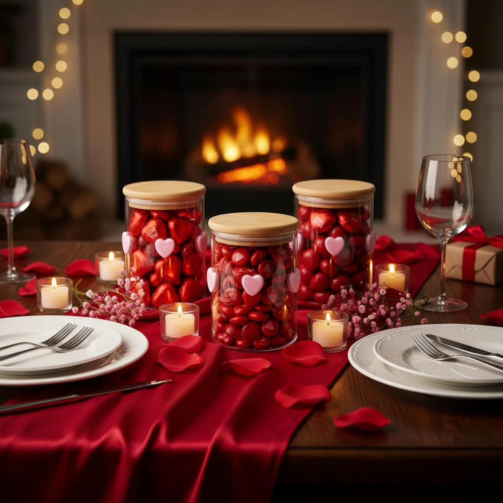 | Package Includes: The Package Includes 3Pcs Valentine'S Day Heart Glass Food Storage Jar, Dimensions Are 3.35 X 4.72 Inches, All Have Corresponding Wood Lids, Allowing You For Enough Storage Space; Sufficient For Your Daily Use And Replacement Needs; You Can Also Give Them As Gifts To Your Family And Friends | | Reliable Materials: The Love Heart Storage Jars Are Made Of Quality Glass Material, Reliable And Safe, Sturdy And Not Easy To Break; And The Lid Is Made Of Quality Wood, With A Smooth And Thick Surface, No Odor, Can Long Time To Use; The Glass Storage Jars Can Keep Food Fresh And Clean, They Can Be Applied Safely For A Long Time; The Patterns Are Printed Clearly And Vivid, Not Easy To Fade, Waterproof But Avoid Rubbing Hard | | Heart Pattern Design: Our Love Heart Themed Glass Storage Jars Designed In Valentine'S Day Theme And Patterned With Conversation Hearts In Bright Colors, Exquisite And Romantic; Whether You Choose To Use Them For Practicality Or Decoratively, This Glass Storage Jars With Lids Will Add Brilliance To Your Living Space | | Wide Opening Design: Our Valentine Heart Glass Storage Jars Are Designed With A Wide Opening That Makes It Easy To Access Your Stored Items; Additionally, It Allows For Easy Cleaning And Refilling; And The Bamboo Wood Lid With A Sealing Ring Makes The Jar More Airtight And Leakproof, Keeping Food Fresh Longer | | Wide Applications: The Heart Glass Canisters Sets Are Perfect For Various Occasions, Such As Valentine'S Day, Wedding, Bridal Shower, Anniversary, Etc., Suitable For Holding Different Small Items, Keep Your Kitchen Tidy And Organized, While Bringing You A Pleasant Visual Enjoyment With The Delicate Patterns; You Can Also Use Them As A Thoughtful Housewarming Gift For Your Friends Or Family Members | |
