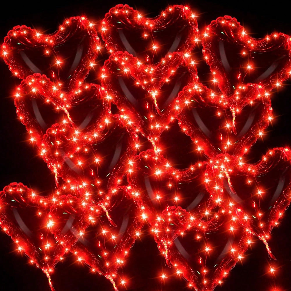 Abundant and Versatile Led Lighting Set: this pack includes 30 heart shape balloons and 30 matching red light strings; With such ample quantity, you can create massive and eye catching decorations for many occasions; Ideal for events like Valentine's Day, engagements, weddings, parties, birthdays, or a cozy setting in your bedroom or bar, these light up balloons ensure your party sets apart from the rest