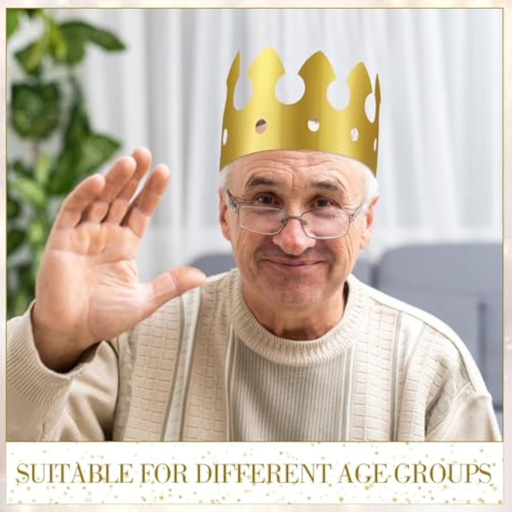 | Cute Gold Paper Crowns: Designed With An Exquisite Gold Color, These Paper Crowns For People Will Instill A Sense Of Attraction; They Are The Ideal Accessories To Complement Outfit, Adding A Touch Of Elegance And Style; Be It A Birthday Party For Men Or Women, These Paper Crowns For Adults Will Be A Hit | | Quality Material: Crafted From Paper, These Gold Paper Crowns Offer Both Durability And Serviceability; Lightweight Yet Sturdy, These Gold Crowns Won'T Easily Tear Or Break, Ensuring They Stay Intact Throughout Your Celebration; Wear Them With Confidence Knowing They Are Built To Last | | Bulk Crowns Package: Suitable For Large Parties Or Events, Each Purchase Includes A Pack Of 30 Paper Crowns For Adults; This Convenient Bulk Pack Ensures You Will Have Enough Crowns To Go Around, Making Them A Proper Choice For Big Gatherings Or Events | | Fit For Most People: These Paper Crowns Are Designed For Adults; Their Universal Design Ensures That Most People, Regardless Of Age, Can Comfortably Wear And Enjoy Them | | Adorable Accessory: Pair These Princess Crowns For Birthday Party With A Dress To Make You Look More Adorable And Charming; They Are The Suit Addition To Fairy Tale Or Princess Themed Party And Will Make You Fantasy Come To Life | |