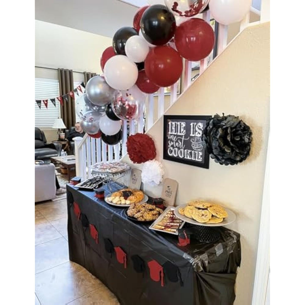 Celebrate in style with this 30-piece maroon, black, and white balloon set—perfect for Class of 2025 graduation parties. The set includes 10 burgundy, 10 black, and 10 white 12-inch balloons, ideal for decorating tables, photo booths, walls, or party backdrops. Whether it’s a high school or college graduation, birthday, wedding, or bachelor event, these sturdy balloons add the perfect festive touch to any celebration.