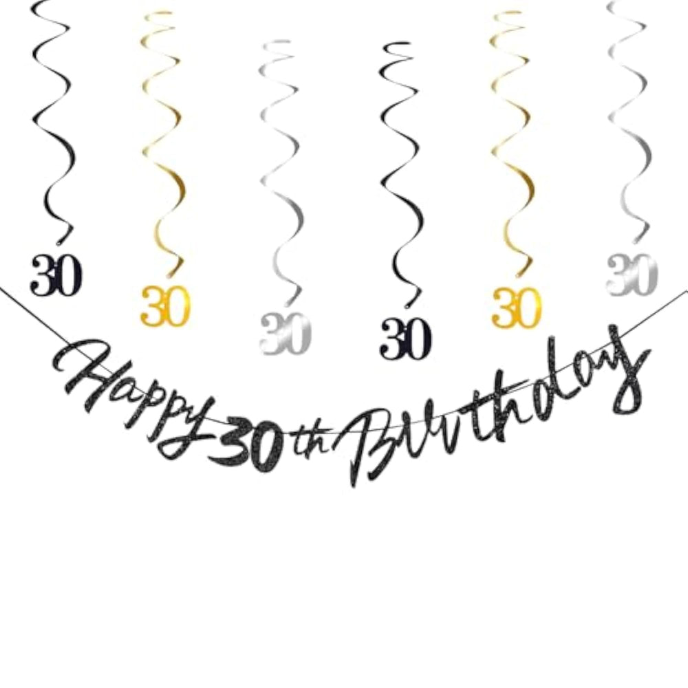 | Package Content: 1 Happy 30Th Birthday Banner, 6 Hanging Vortex Banners, Making Your Birthday Party More Interesting. | | Convenient Installation: The Hanging Vortex Is Made Of Shiny Foil Material. There Is A Plastic Ring At The Top Of Each Vortex, Which Can Be Hung Immediately By Stretching It. | | Quality And Specifications: Happy Birthday Banner Is Made Of Strong High-Quality Environmental Protection Cards, Which Are Not Easy To Be Damaged And Can Be Reused. | | Widely Used: Hang Them On Walls, Windows, Branches, Corridors And Other Indoor And Outdoor Places You Like. Use Them To Create A Dreamy Background For Your Birthday Party. | | Lovely Party Decoration: Our Birthday Banner Set Is Very Suitable For Girls/Boys' 30Th Birthday Party And Adult Party Time, Adding More Interesting Colors To Your Birthday Party. | |