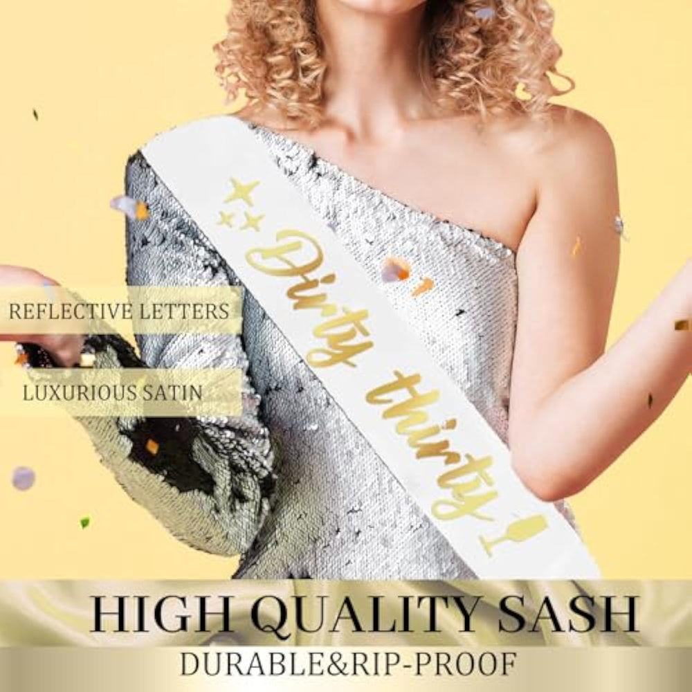 | [Packaging Includes] The 30-Year-Old Champagne Gold Set Includes 32”Aluminum Film Balloons "3""0", Happy Birthday Banner * 1, 1Pc 30Th Cake Topper, 30 Cake Candle * 1, 30Th Birthday Sash And Crown, 12Pcs Balloons, 2Pcs Gold Fringe Curtain | | [Quality 30Th Birthday Party Decorations] Each Set Of 30Th Gold Birthday Decorations Are Carefully Checked To Ensure The Following: Quality Balloons Are Long-Lasting, Won'T Burst Easily, No Unpleasant Holes Or Odors, Use Air And Helium. No More Misspelled Happy Birthday Rose Gold Banners And Poor Quality Balloons! Every Girl Will Have A Happy 30Th Birthday. | | [Fablulous 30Th Sash For Women] The Gold 30Th Birthday Sash Is Made From High Quality Glitter Fabric And Printed With Gold Foil Words. Elegant And Gorgeous! The Sash Is In 63Inch Length And Comes With A Pretty Pearl Pin. You Can Adjust The Length By Using The Pearl Pin In The Package. Th Pin Also Put The Perfect Finishing Touch On Your Party Outfit. | | [Sturdy Metal Crown] The Gold 30Th Birthday Tiara Is Made From High Quality Alloy And Rhinestone. Suitable For Most Girls And Girls. Crown With Combs: Two Combs Located On Both Ends Of The Crown Can Grip The Hair More Tightly | | [Great 30Th Birthday Decorations For Women] The 30Th Birthday Party Set Is Suitable For Women 30Th Birthday Party Decoration. Get Our Birthday Banner, Sash And Crown Set To Add Much Fun To Your Birthday Celebration. It Will Be A Memorable One For 30 Years Old Birthday Women And Makes 30Th Birthday Party More Meaningful. | |