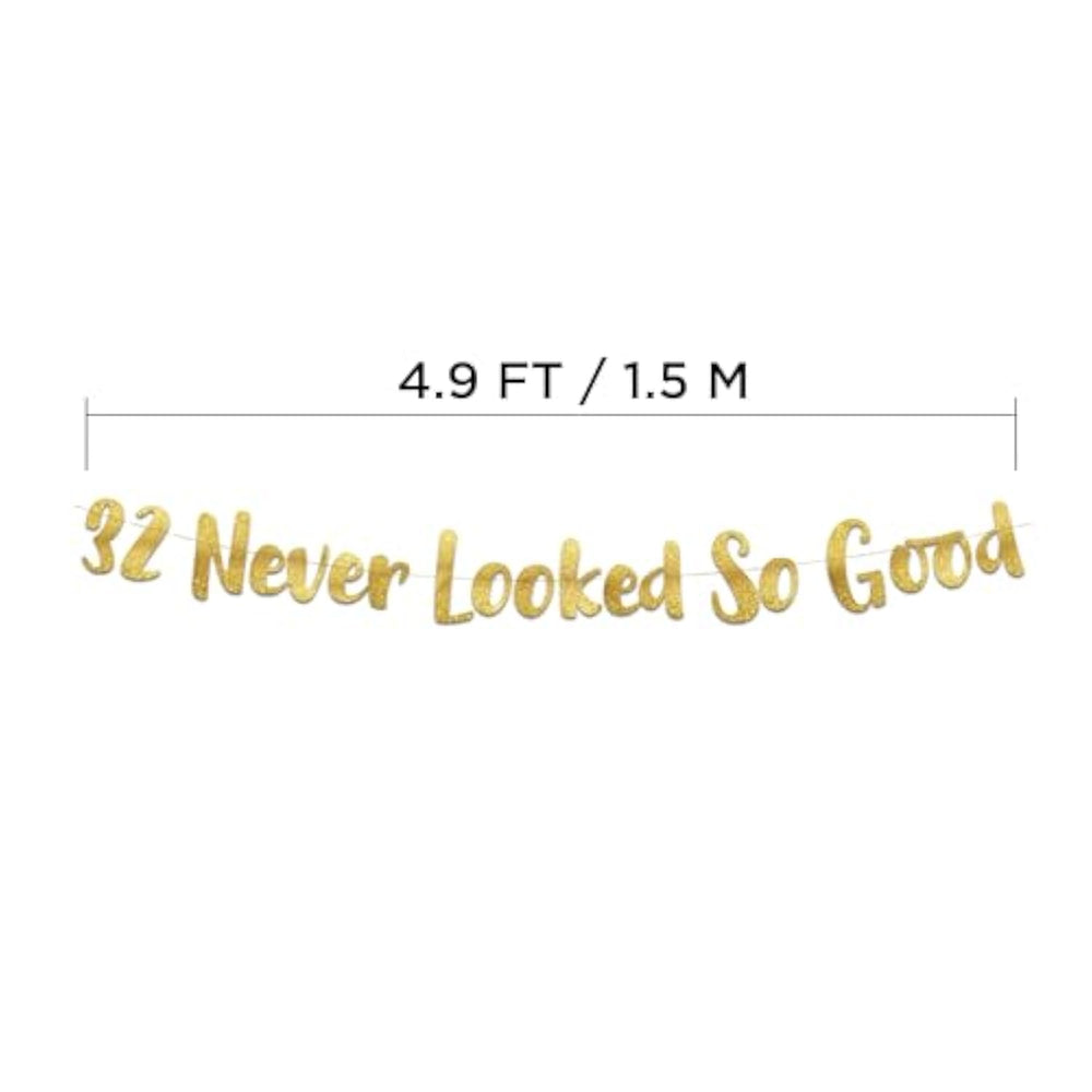| Banner Comes Pre-Strung | | Congrats On 32 Years Of Excellence! This Gold Glitter Banner Is The Perfect Decoration To Add A Touch Of Classy Decor And Welcome Your Guests To The Occasion. | | This Banner Is Sturdy But Not Heavy And Meant To Be Reused. | | Size: Banner Is Petite And Measures Approximately 5 Feet. First Great Above A Dessert Table Or Fireplace Mantle. | |