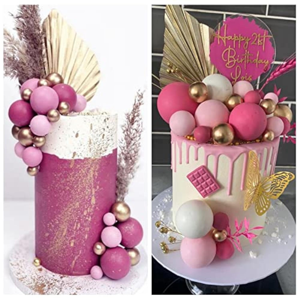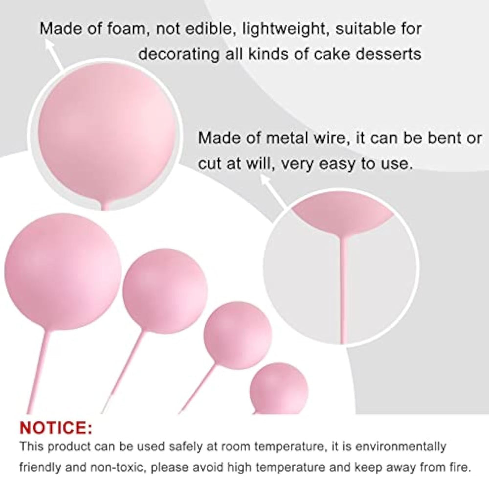 | Package Includes: 32 Pcs Balls Cake Decorations With Different Colors And Sizes. They Are Gold, White, Pink, Hot Pink Colors As Picture Showed, 8 Pieces Of Each Color. | | Size: The Diameter Of These Ball Cake Toppers Are 0.79 Inch/ 2 Cm, 0.98 Inch/ 2.5 Cm, 1.18 Inches/ 3 Cm, 1.57 Inches/ 4 Cm, 8 Pieces Of Each Size. The Combination Of Size And Color Will Decorate Your Cake More Layered And Delicate. | | Premium Material: These Ball Cupcake Toppers Are Made Of Foam And Wire. Safe To Decorate Food At Room Temperature, Such As Cake Or Dessert Decorating Use, Or Cupcakes, Fruits, Cheese And Any Dish And Appetizer You Want To Decorate. | | Party Cake Decorations: These Cake Decoration Balls Are Very Cute, Like Mini Balloons, Several Colors Have Been Matched And Combined, Very Suitable For Cake Decoration In Various Parties, Such As Birthday Party, Baby Shower, Garden Party, Home Party, Valentines, Wedding, Gender Reveal Party, Anniversary Party Cupcake Decorations. You Can Also Apply Them For Ice Cream, Fruits, Cookies And Other Desserts. | | Tips: These Cupcake Toppers Are Disposable And Not Edible. Only For Decoration Purposes, This Is Not Edible And Please Do Not Use It In Oven Or Microwave. | |