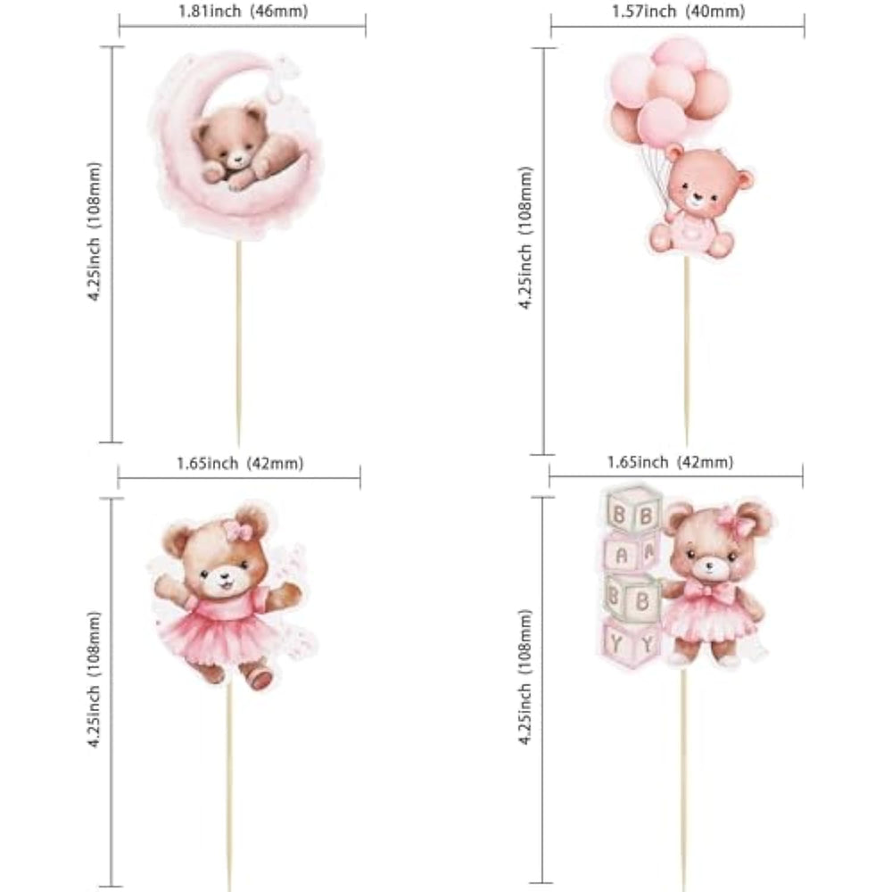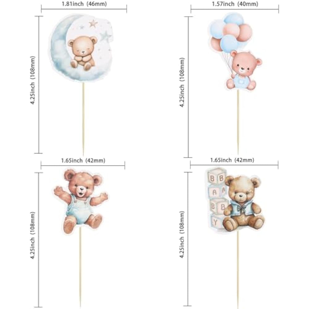 | --Package Included: 32Pcs Bear Cupcake Toppers. Comes With Assembled, So You Can Insert Into Your Cake Directly, Which Make Your Cake More Interesting. | | --Premium Material: These Bear Cupcake Toppers Are Made Of High Quality 300 Gram Card Stock And Food-Grade Toothpick, Very Safe To Put Them On Cakes, Cupcakes, Ice Cream, Fruits, Pie, Dessert, Cheese Or Any Dish And Food Appetizer You Want To Decorate Valentine Theme Party Decorations. | | --Bear Cupcake Toppers Are So Cute And Good For Baby Bear Theme Party, Gender Reveal Theme Party, Baby Shower Theme Party, Kids Birthday Theme Party Cupcake Decorations.They Can Make Your Cupcake More Attractive And Bring The Fun To Your Party. You Can Also Apply Them For Ice Cream, Fruits, Cookies And Other Desserts. | | --Widely Application: Unique Personalized Propose Bear Theme Design. Best Party Cake Decor Which Can Be Used At Bear Babyshower Party Decorations, And Other Similar Theme Parties. | | --Tips: These Cupcake Toppers Are Designed For Single-Sided, The Backside Is Plain White. Only For Decoration Purposes, This Is Not Edible And Please Do Not Use It In Oven Or Microwave. Our Highest Priority Is Your Satisfaction. | |