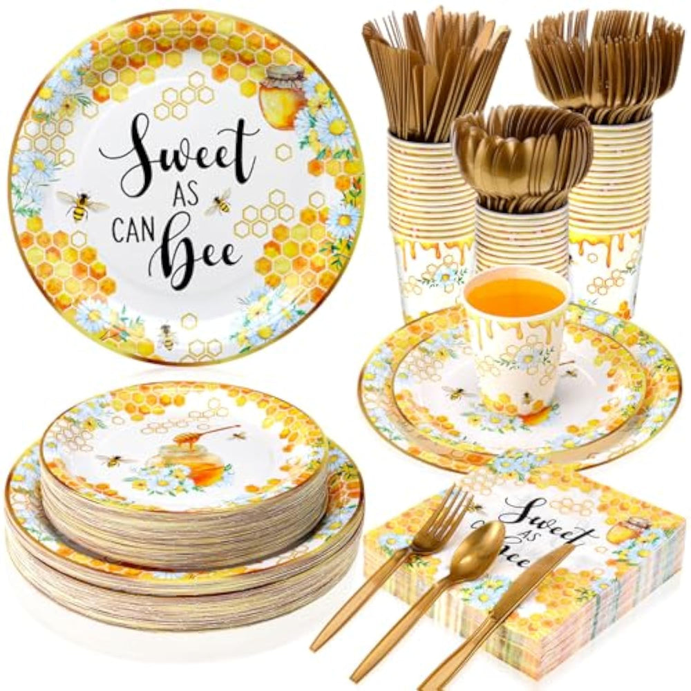 | Elegant Party Package For 50: The Exquisite Bee Baby Shower Party Tableware Set Includes 50 Pieces Of 9-Inch Dinner Paper Plates, 50 Pieces Of 7-Inch Dessert Paper Plates, 50 Pieces Of Napkins, 50 Pieces Of 9 Oz Paper Cups, And 50 Plastic Cutlery Sets; All Ripe In Attractive Boho Theme Designs; Ensure Your Party Has The Concept Of Sophistication Without Compromising On Quantity | | Enticing Bee Design: Our Disposable Tableware Set Features Stunning Designs With Vibrant Bee; These Artistic And Elegant Designs Will Lend A Decorative Touch To The Party Setting; Watch As Our Tableware Transform Ordinary Setups Into Remarkable Dining Experiences; Your Guests Will Be Delighted By Our Plates' Subtle, Yet Striking Aesthetic Appeal | | Safety And Quality You Can Trust: You And Your Guests' Safety Are Our Priority; These Bee Party Supplies Are Made From Quality, Sturdy, And Reliable Paper, While Our Comprehensive Plastic Cutlery Includes Forks, Knives, And Spoons; We Commit To Providing You With Safe And Reliable, Yet Stylish Tableware You Can Trust | | Ease And Convenience: Bid Goodbye To Tedious Post Party Cleanups; Our Brunch Decorations Party Kit Is An Absolute Breeze To Use And Dispose Of; You Can Simply Throw Them Away Once They'Ve Served Their Purpose; Now, Everybody Can Sit Back, Enjoy, And Not Worry About The Daunting Task Of Washing Up | | Versatile Occasions: Our Bee Party Supplies Suit Most Occasions; Good For Birthdays, Tea Parties, Garden Parties, Baby Showers, Mother'S Day, Weddings, Anniversaries, Picnics, Bridal Showers, And Other Get Togethers; Our Paper Plates Set With An Artistic Tone Will Make Your Event Standout, Whatever The Celebration May Be | |