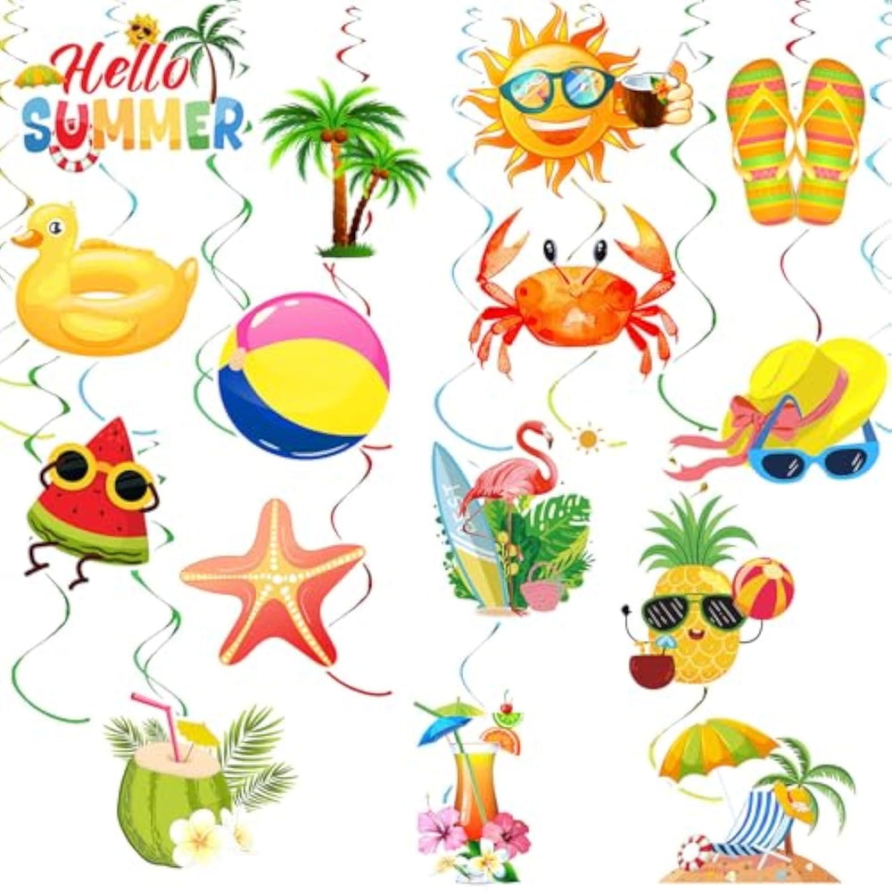 | All In One Package: You Will Get 35 Piece Of Happy Summer Pool Beach Party Hanging Swirl Decorations,Including 15 Pieces Of Colorful Summer Themed Cards With Double Sided Printing Cutouts ,16 Single Spiral And 4 Double Spiral Decorations.These Cute Hanging Swirls Streamers Can Decorate Your Tropical Beach Pool Party Decorations That Will Bring Life And Fun To Your Summer Beach Party.Make Your Hawaiian Luau Party Most Fashionable, Most Exciting And Most Impressive. | | Fun Summer Design:These Summer Pool Beach Party Hanging Swirl Decorations Kit Composed Of Cute Watermelon,Sun, Coconut, Drink,Flame Bird, Coconut Tree,Ball,Slippers And So On,Perfect For Summer Themed Celebrating Pool Beach Party Decorations, 15 Various Patterns Of Cool Summer Elements With Different Hanging Lengths,Sizes And Shapes.Have A Satisfying Summer Party For Your Child'S Family Or Friends. | | High Quality Material:These Summer Pool Beach Birthday Decorations Are Made Of High-Quality Double Sided Cardboard,Not Easy To Bend, Lightweight But Strong,Durable And Reusable. | | Easy To Use:These Happy Summer Themed Party Decorations With The Hook On The Top So That Can Hang It Anywhere You Like,Such As Ceiling,Windows,Arch,Door,Porch, Overhang And So On. It Will Be The Ideal Choice For Indoor And Outdoor Parties. | | Widely Applicable: Our Summer Beach Themed Party Swirls Streamers Supplies Can Be Used For Various Party Decorations,Such As Summer Pool Parties, Beach Parties,Luau/ Hawaii Theme Birthday Parties,Boys Girls Birthday Parties, Baby Showers And So On. | |
