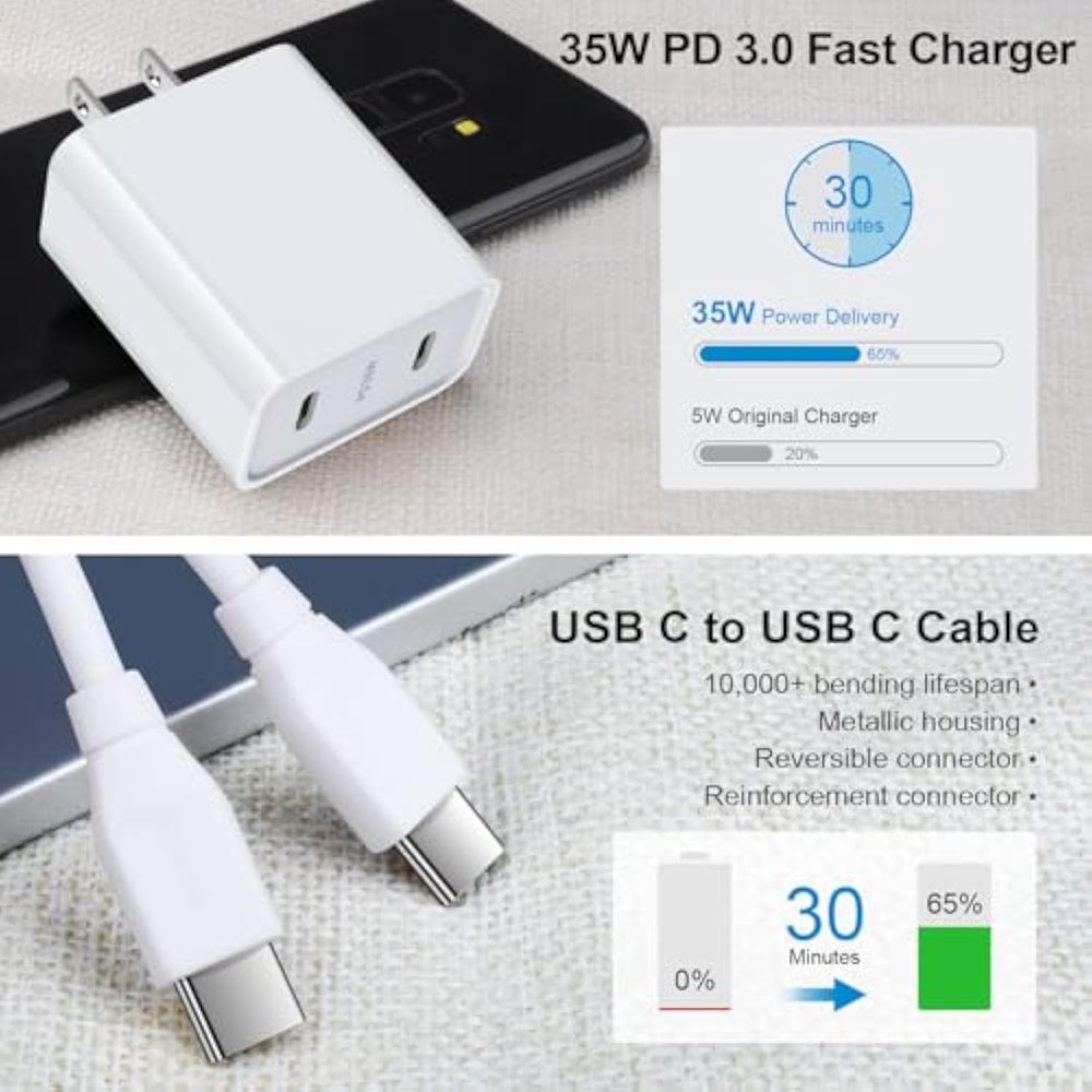 ???Wide Compatibility?: The Google Pixel Charger Fast Charging Cable Compatible With Google Pixel 8A/8/8 Pro, 7A/7/7 Pro, 6A/6 Pro/6, 5/5A, 4/4A/4Xl/4A Xl, 3/3A/3Xl/3A Xl, 2/2Xl, Xl, Pixel Fold, Pixel Tablet, Pixel C Tab, Google Chromebook Pixel, Iphone 15/15 Pro/15 Pro Max/15 Plus, Samsung Galaxy S24 Ultra S23 Fe S22 S21 S20 5G S10 S9 S8, A15 5G A14 A13 A12 A53 A54 A55 A34 A04S A03S A02S A10E A20 A50 A21 A11, Note 20/10/9/8, Z Flip 6/5/4/3, Z Fold 6/5/4/3, Lg Stylo 6/5 And More Usb-C Devices. | | ??35W Dual Port Usb C Fast Charger?: Pd 3.0 Usb C Wall Charger Fast Charging Port Reach 35W Max Output, Fast Charge Your Google Pixel Phone Up To 65% In 30 Minutes, Full Charging In Only 1 Hour, 5X Faster Than The Original 5W Charger, Saving More Time For You. (Note: When Both Ports Are Charging At The Same Time, 35W Is Shared.) | | ???6Ft Type C To C Cable?: Pd 60W Usb C To C Charging Cable Support 480Mbps Data Syncing Between Your Phone And Laptop. Power Output Up To 3Amp Which Is 75% Fast.